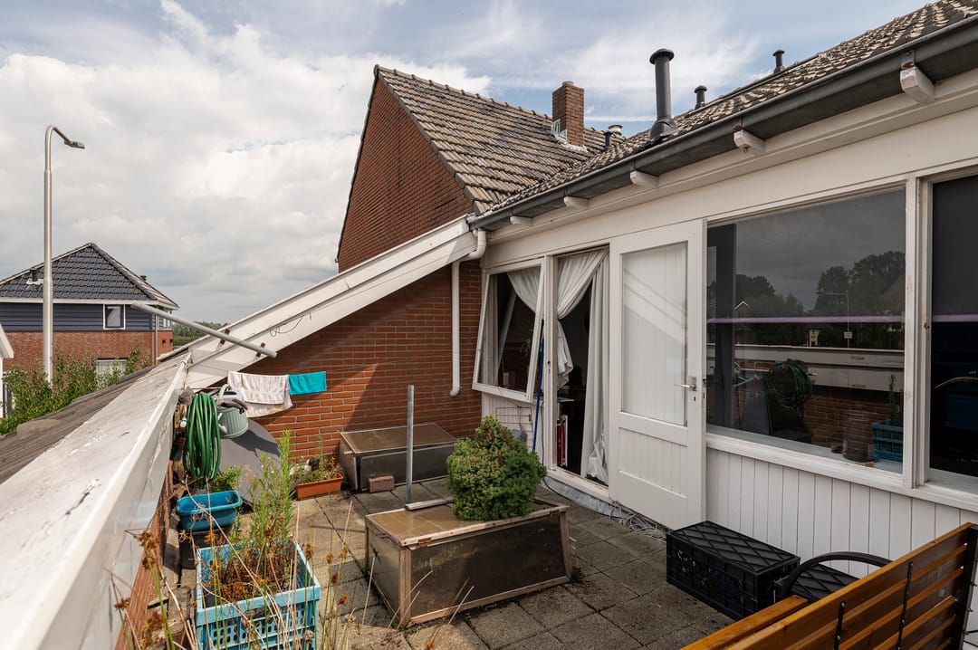 De oorspronkelijke dijkwoning van het type twee onder een kap is medio 1975 herbouwd als eengezins-/bedrijfswoning bij de achtergelegen winkelruimte. De woning is verkamerd in 6 kamers met een gemeenschappelijke keuken en badkamer. De kamers zijn allemaal verhuurd. De totale (woon)oppervlakte bedraagt 180 m2
