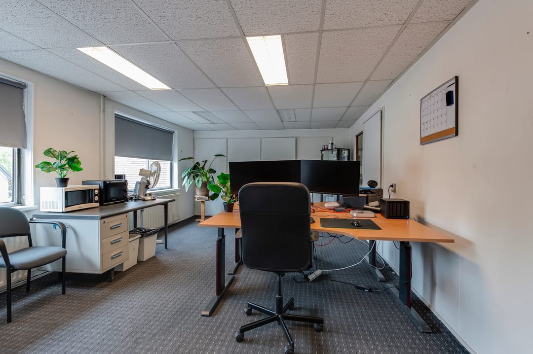 Aangrenzend aan de (voormalige) winkelruimte en aan de Krugerstraat ligt het bedrijfsverzamelgebouw. Het bedrijfsverzamelgebouw is ingedeeld met een (voormalige) kapsalon van circa 36 m2 op de begane grond, 4 separate kantoorruimten van totaal circa 73m2 op de eerste verdieping, een garagebox en overige bedrijfs-/opslagruimte van circa 135 m2 op begane grond en 100 m2 op de eerste verdieping.