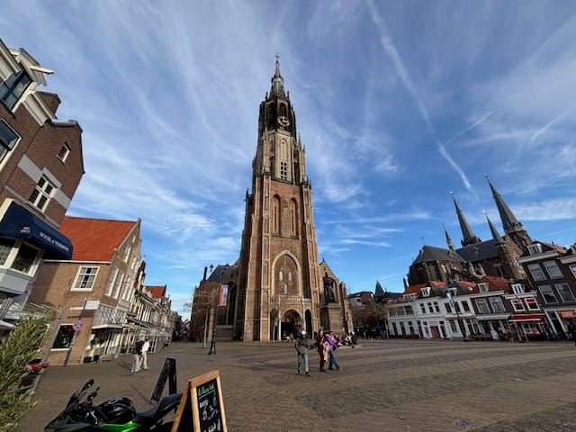 Het adres bevindt zich in het kerngebied van Delft, wat betekent dat het deel uitmaakt van een druk bezocht historisch stadsplein.