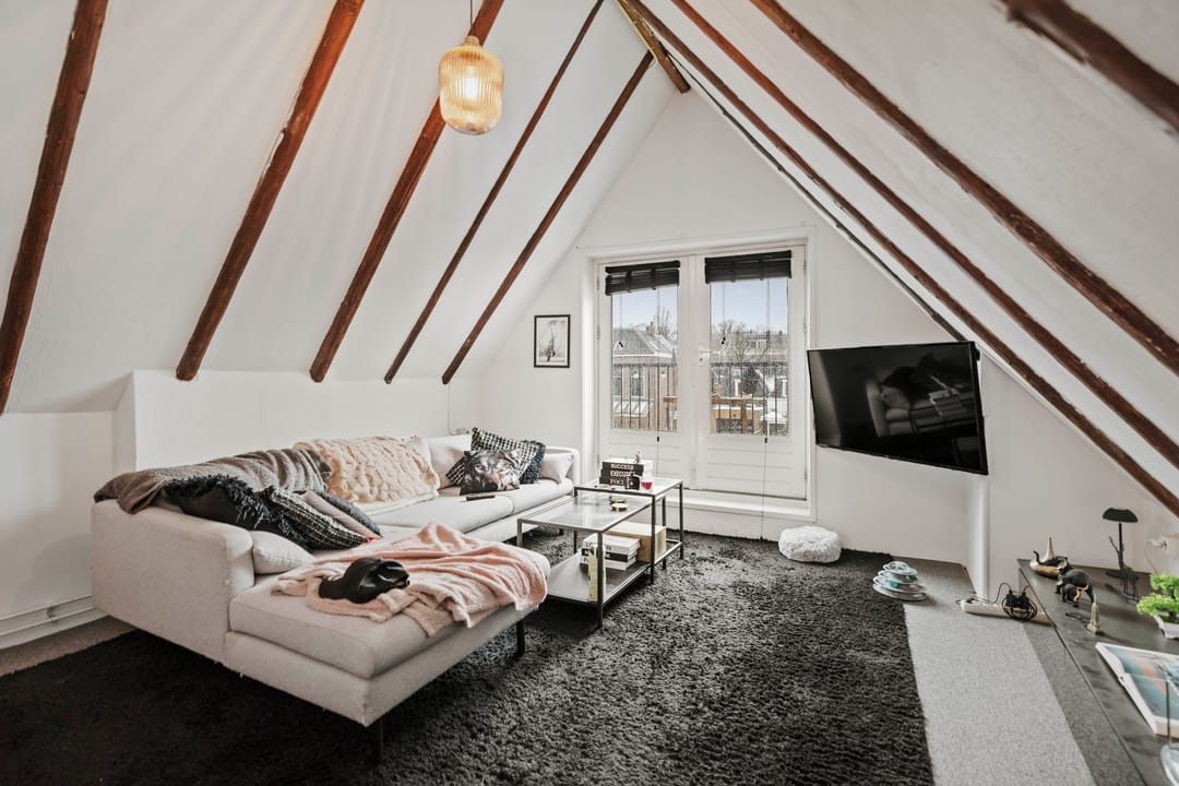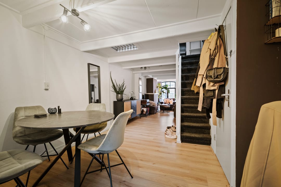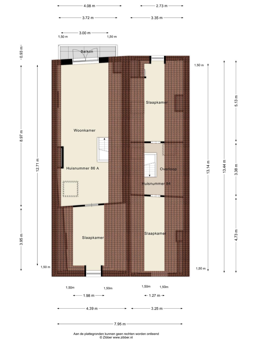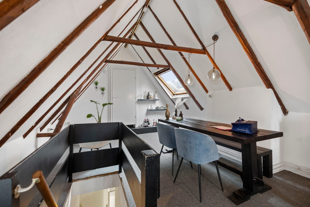 nr. 86A (2 woonlagen): eigen entree aan voorzijde, per trap bereikbare gezamenlijke overloop, entree met toegang tot hal met wasmachine opstelling, deur naar slaapkamer aan de voorzijde met 2 raampartijen. Vanuit het halletje bereikbare keuken met keukenopstelling en deur naar doucheruimte met wastafel en toilet. Per vaste trap bereik je de volgende leuke woonlaag. Hier is een sfeervolle living voorzien van een dakraam. Aan de achterzijde is een balkon, waar het heerlijk vertoeven is. Er is nog een slaapvertrek aan de voorzijde.