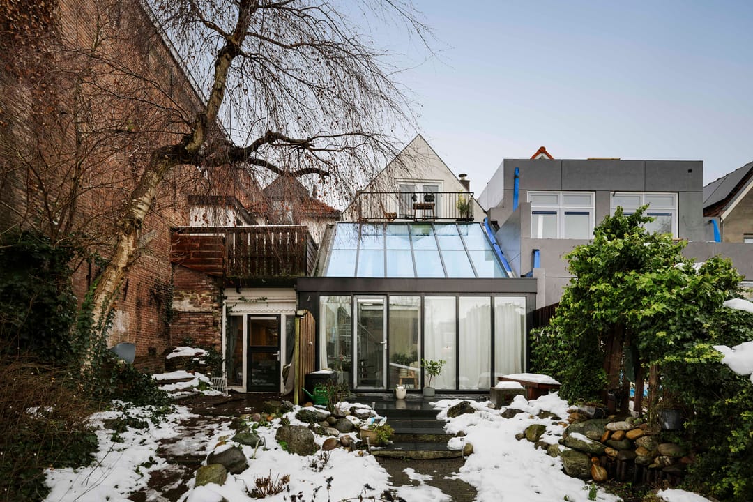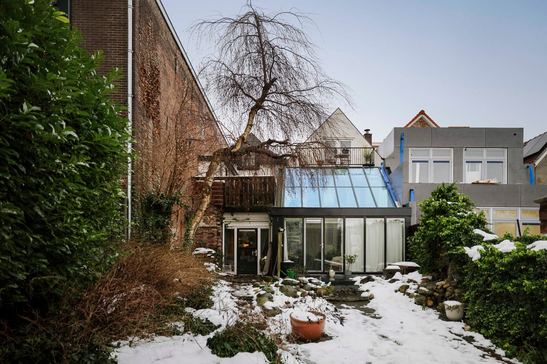 Er is een verrassend grote en diepe achtertuin met eigen achterom.