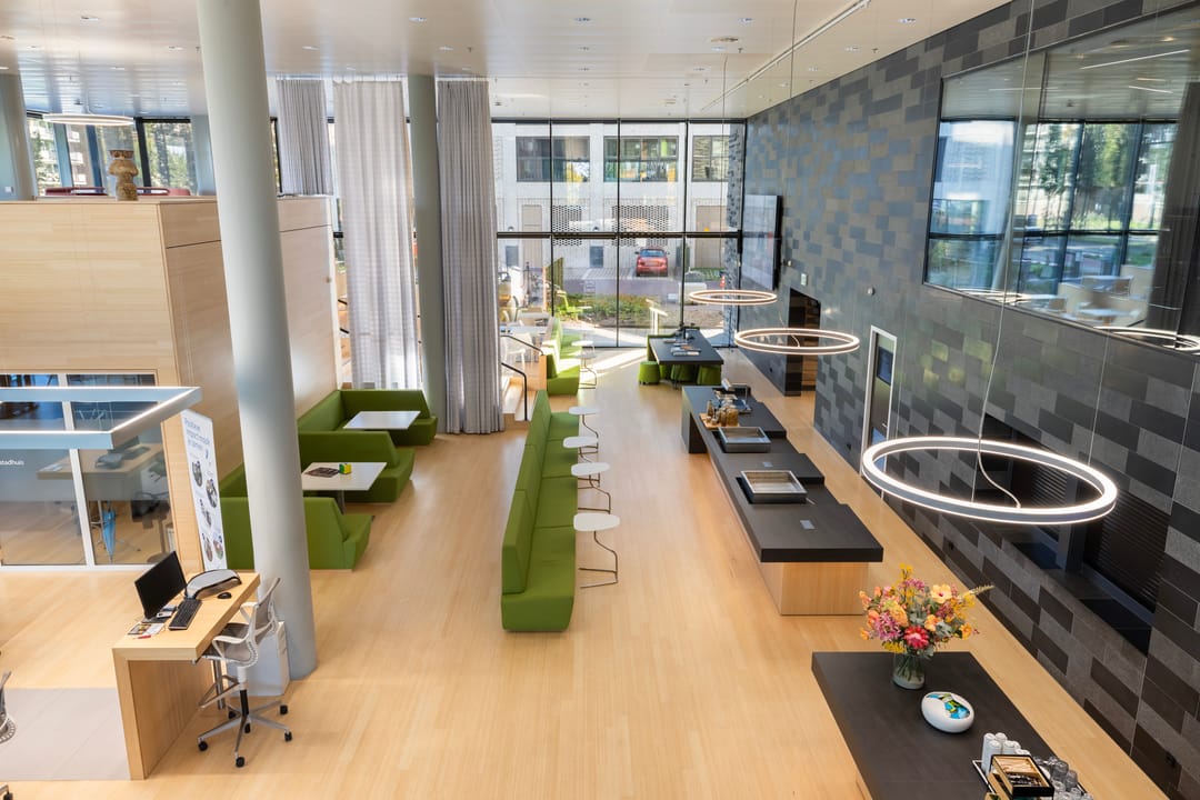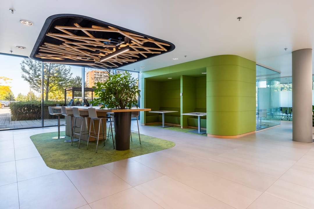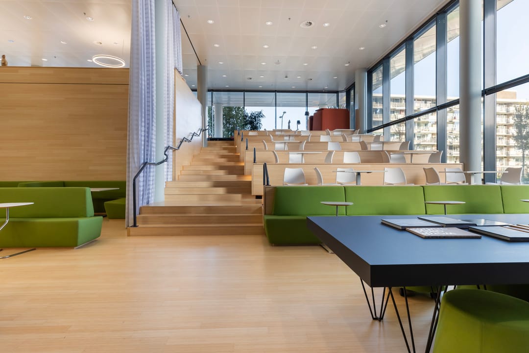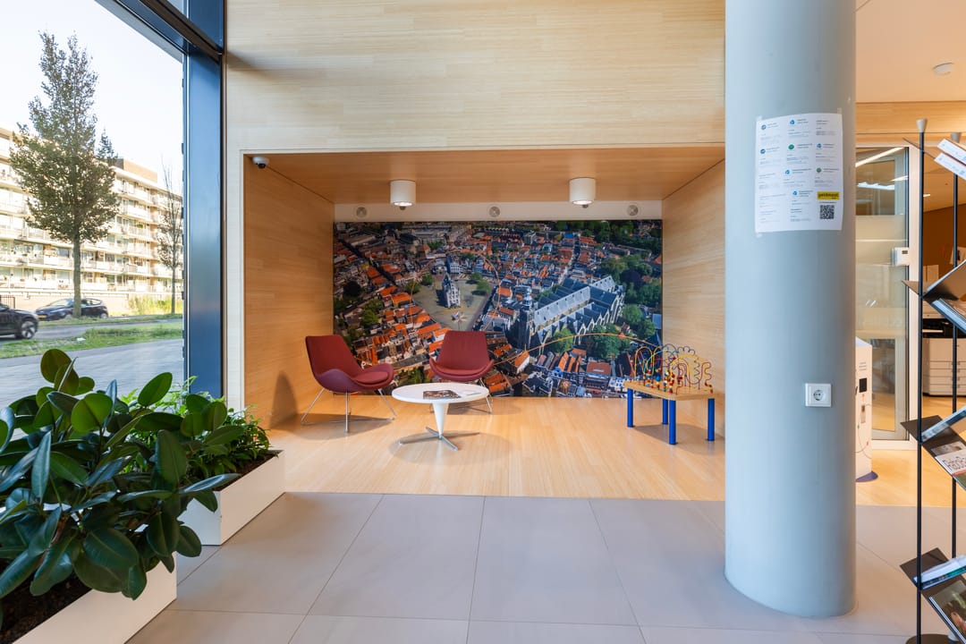 - ontmoetingsplein en werkcafé met diverse overlegplekken (open en besloten) en een koffiecorner;
