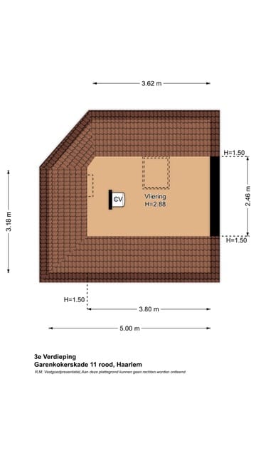 3e etage: via vlizotrap bereikbare (bevloerde) bergzolder + combiketel.
