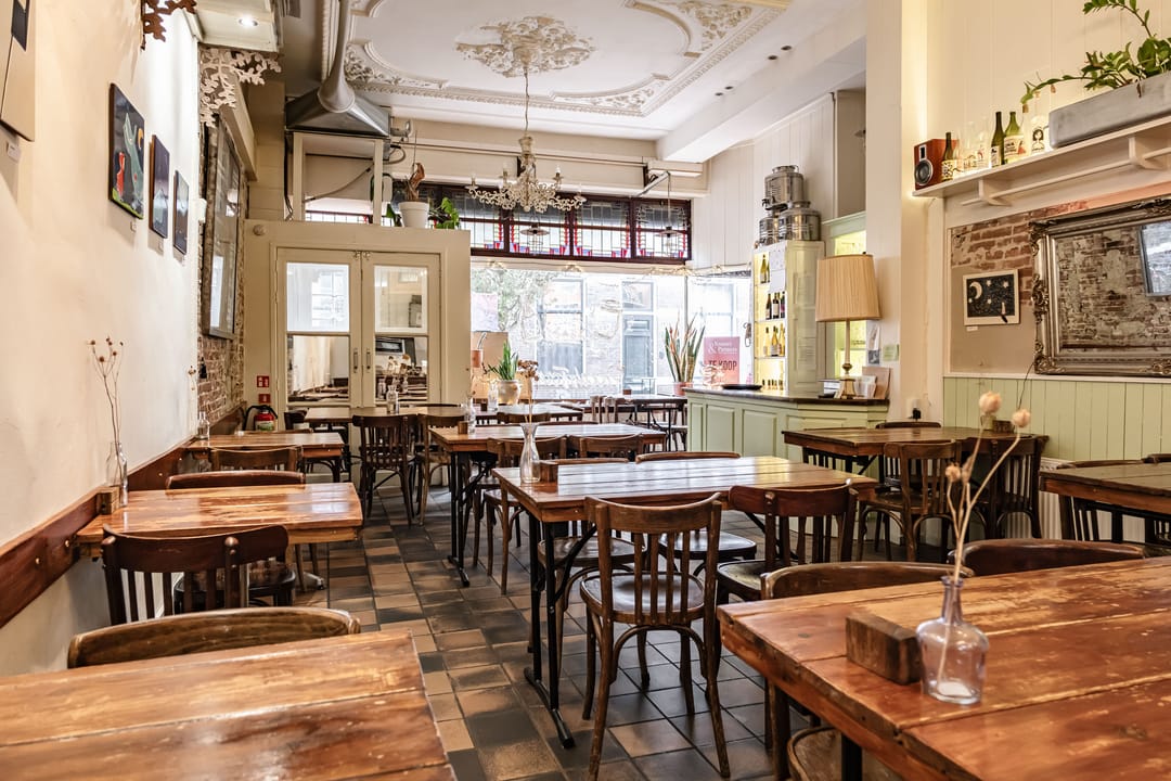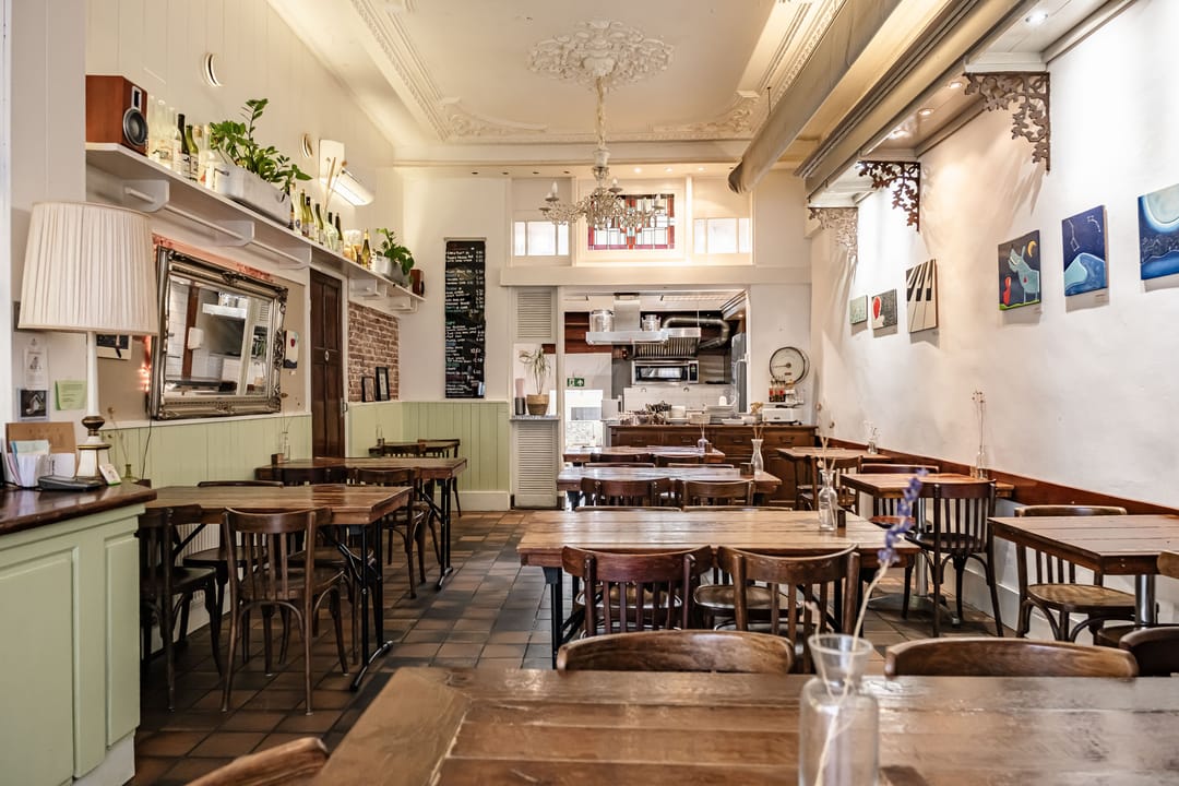 Het restaurant meet totaal 133m2, begane grond: 121m2 en kelder 12m2 (BVO) en heeft een frontbreedte van ca. 5,5m