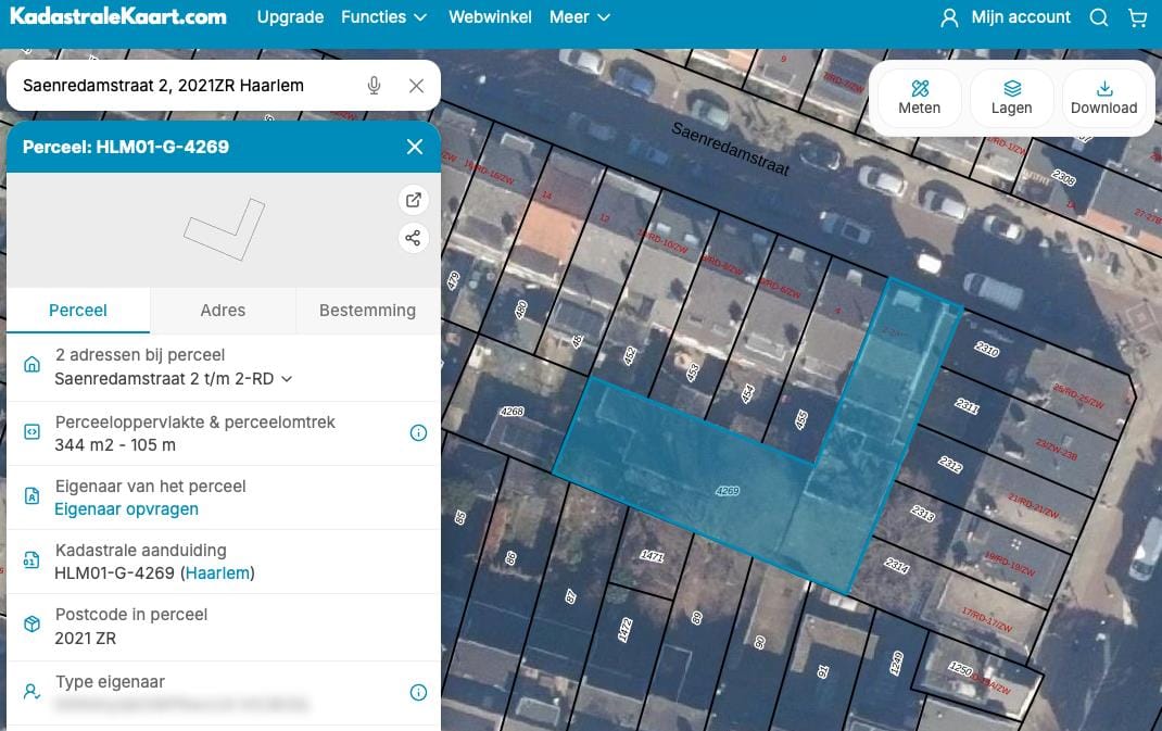 Gemeente HAARLEM, sectie G, nummer 4269, groot 344m2
