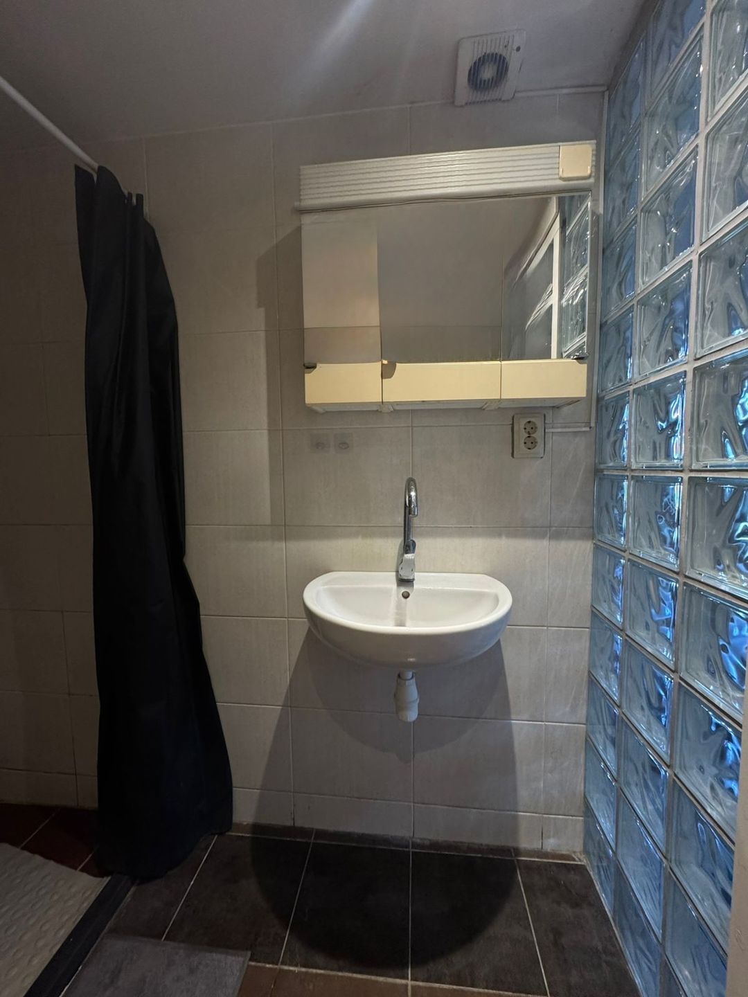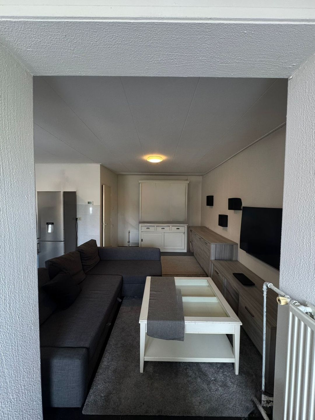 Woonkamer; keuken met standaard keukeninstallatie; slaapkamer; geheel betegelde badkamer met toilet, douche en vaste wastafel.