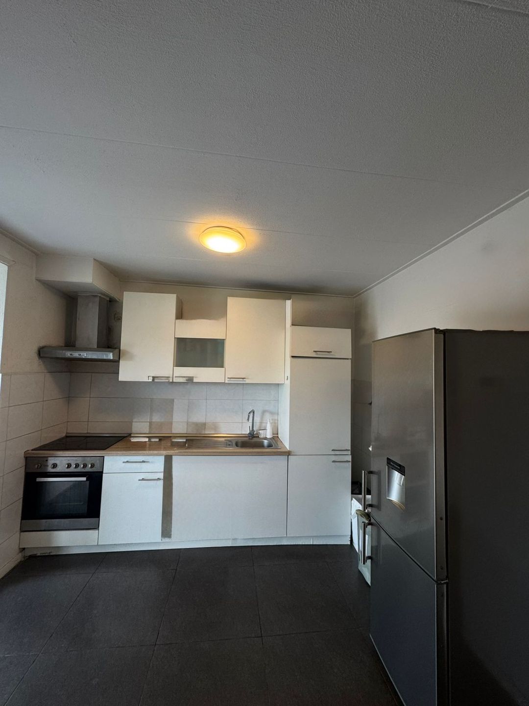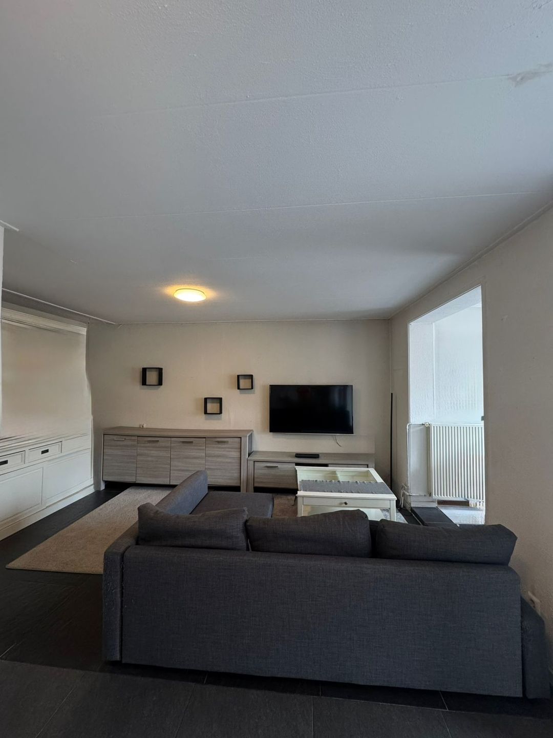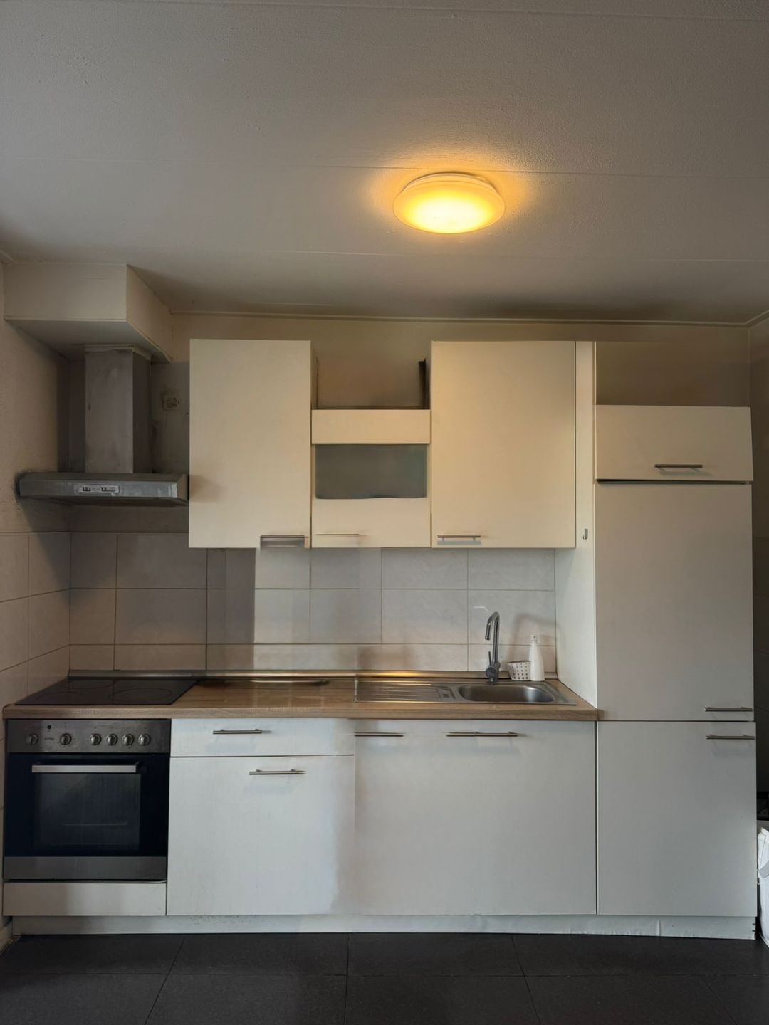 Woonkamer, verdeeld in 2 ruimtes met schuifpui naar dakterras; keuken met standaard keukeninstallatie; slaapkamer; geheel betegelde badkamer met toilet, douche en vaste wastafel; dakterras.
