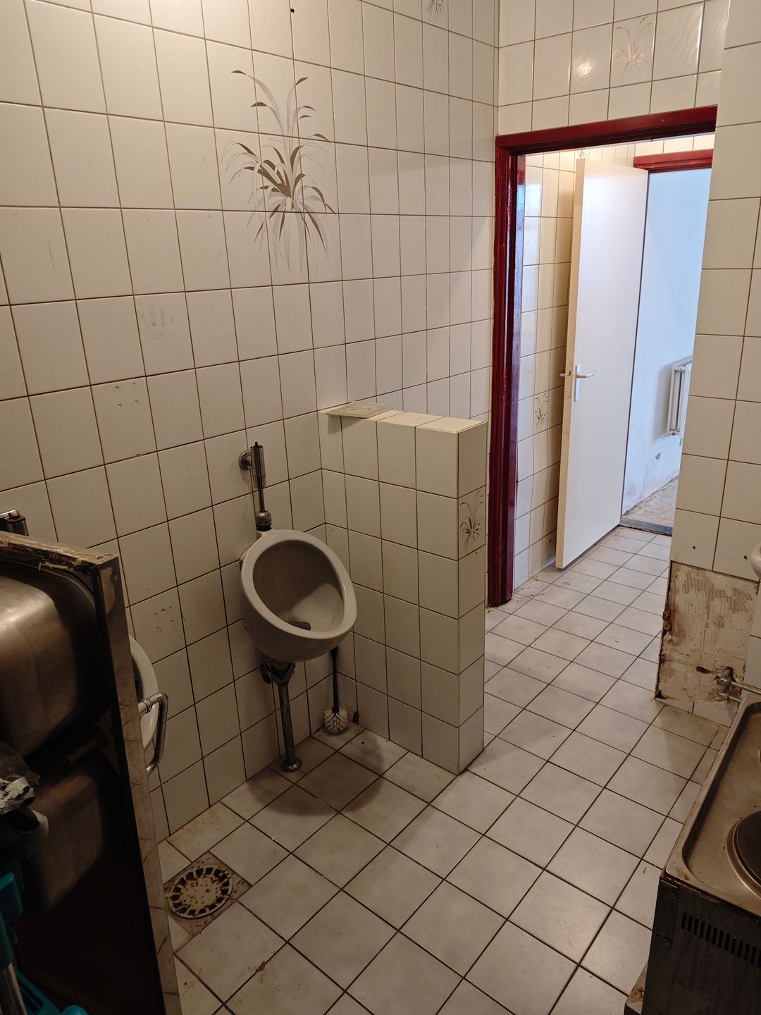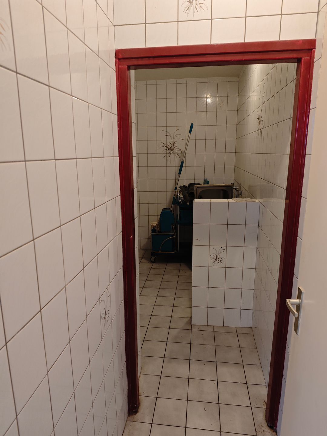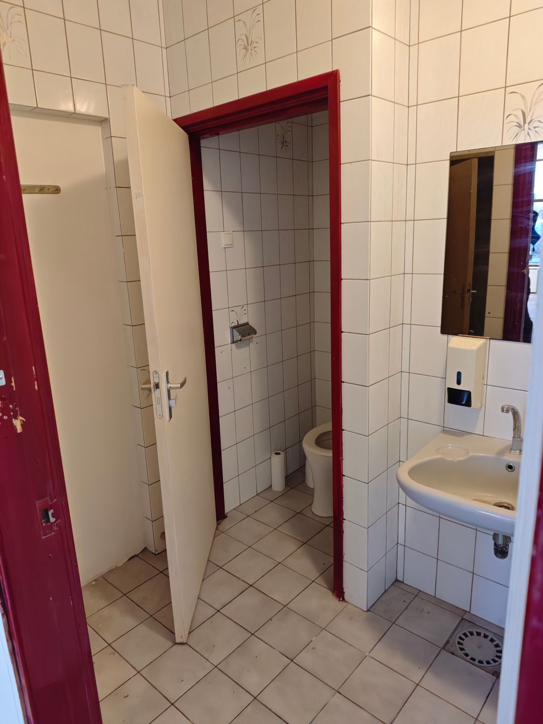 Winkelruimte (circa 120 m2); keukenruimte met cv-ketel en nooduitgang; herentoilet met 3 pissoirs, wc en vaste wastafel; damestoilet.