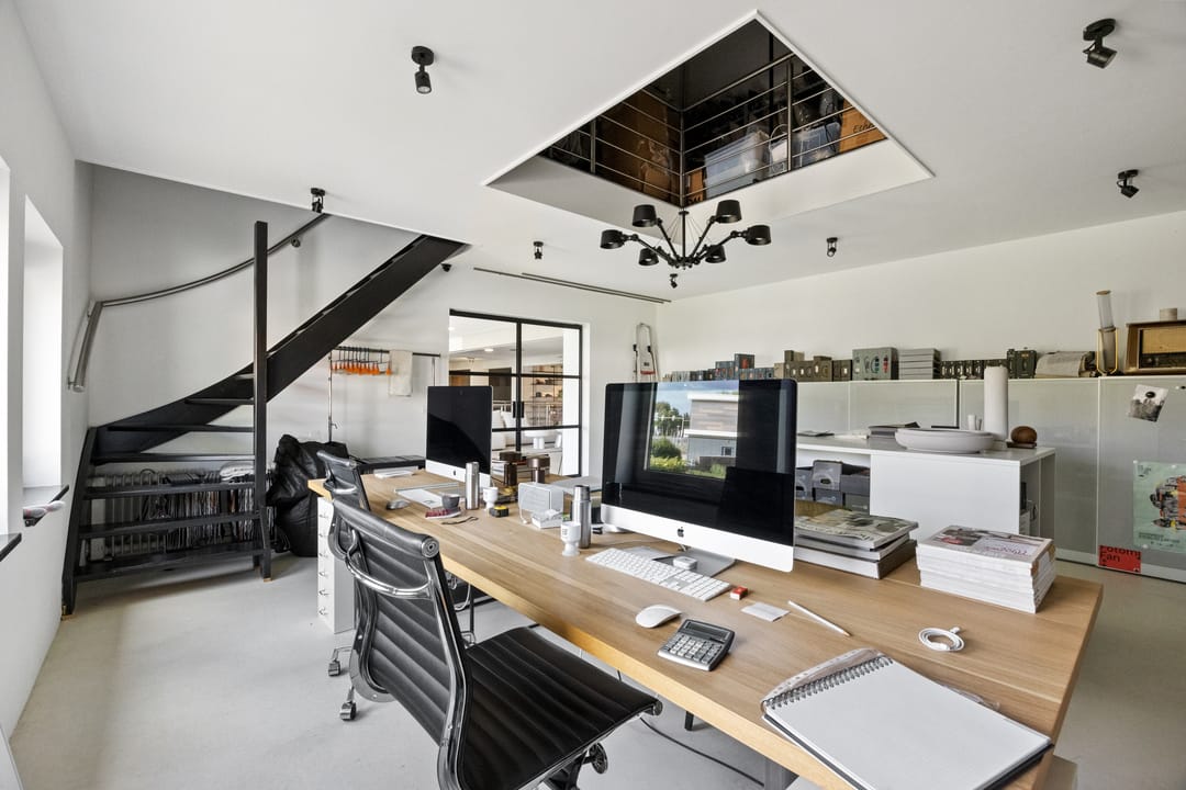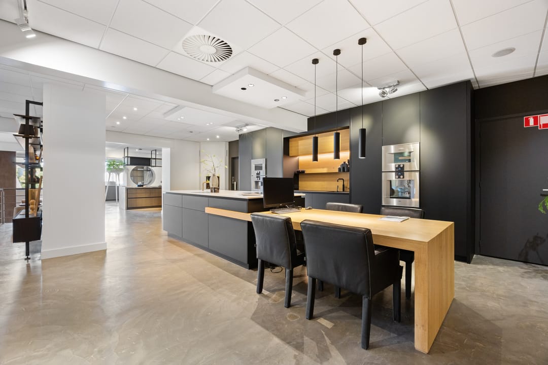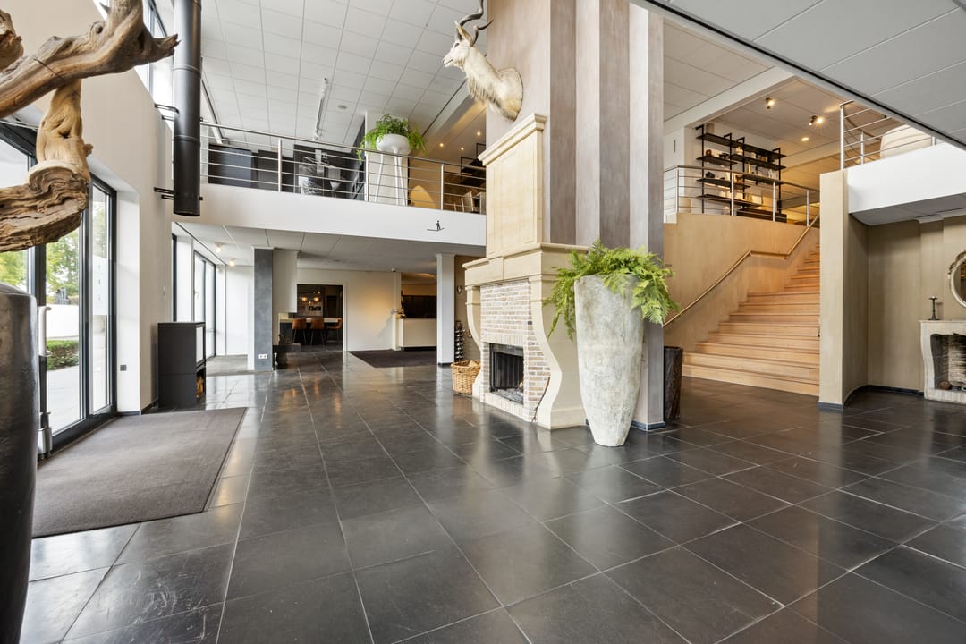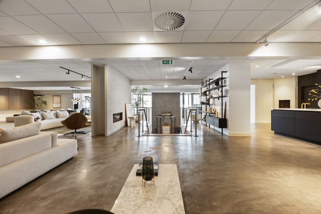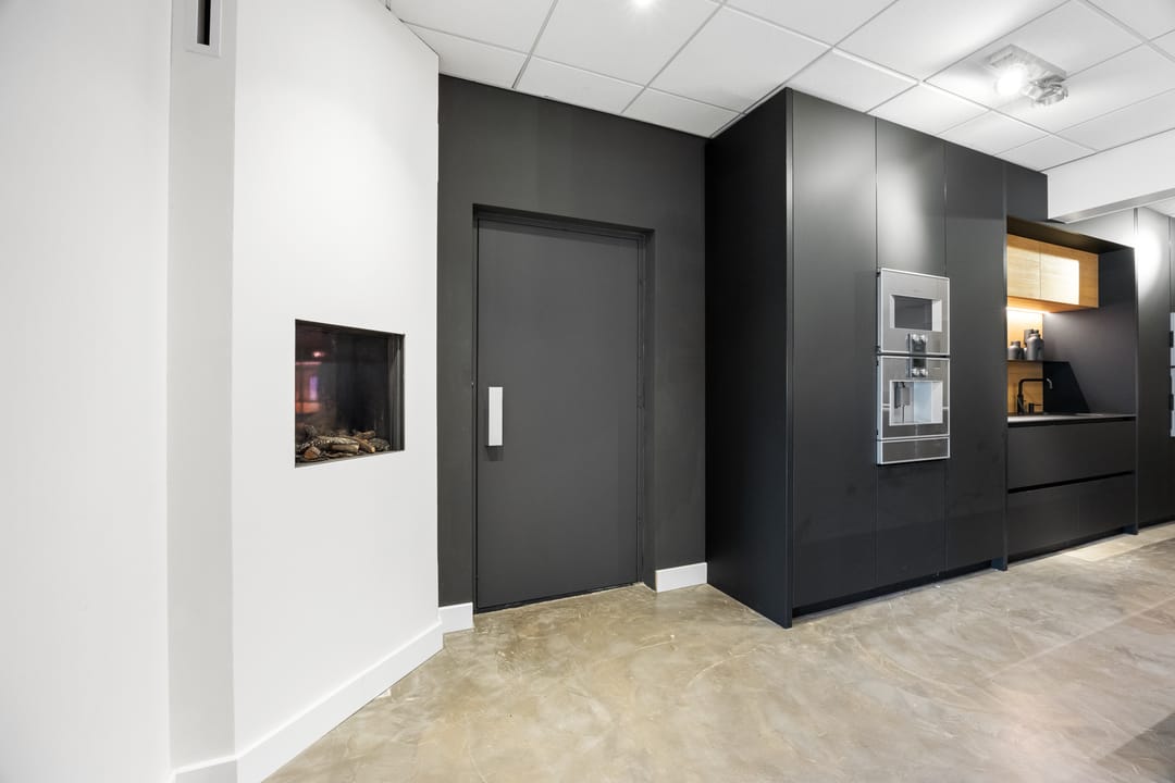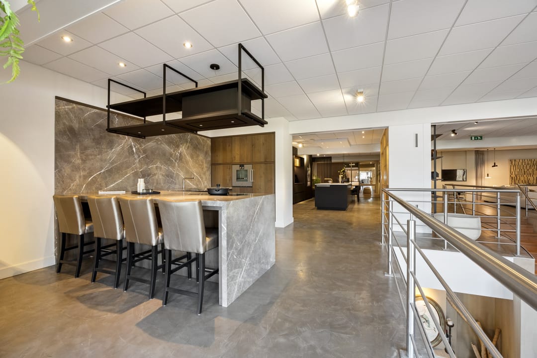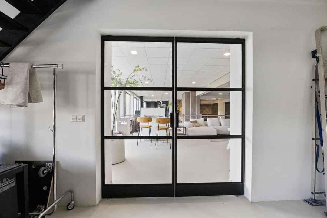 middels vaste trap en liftinstallatie bereikbaar showroom en stalenkamer.