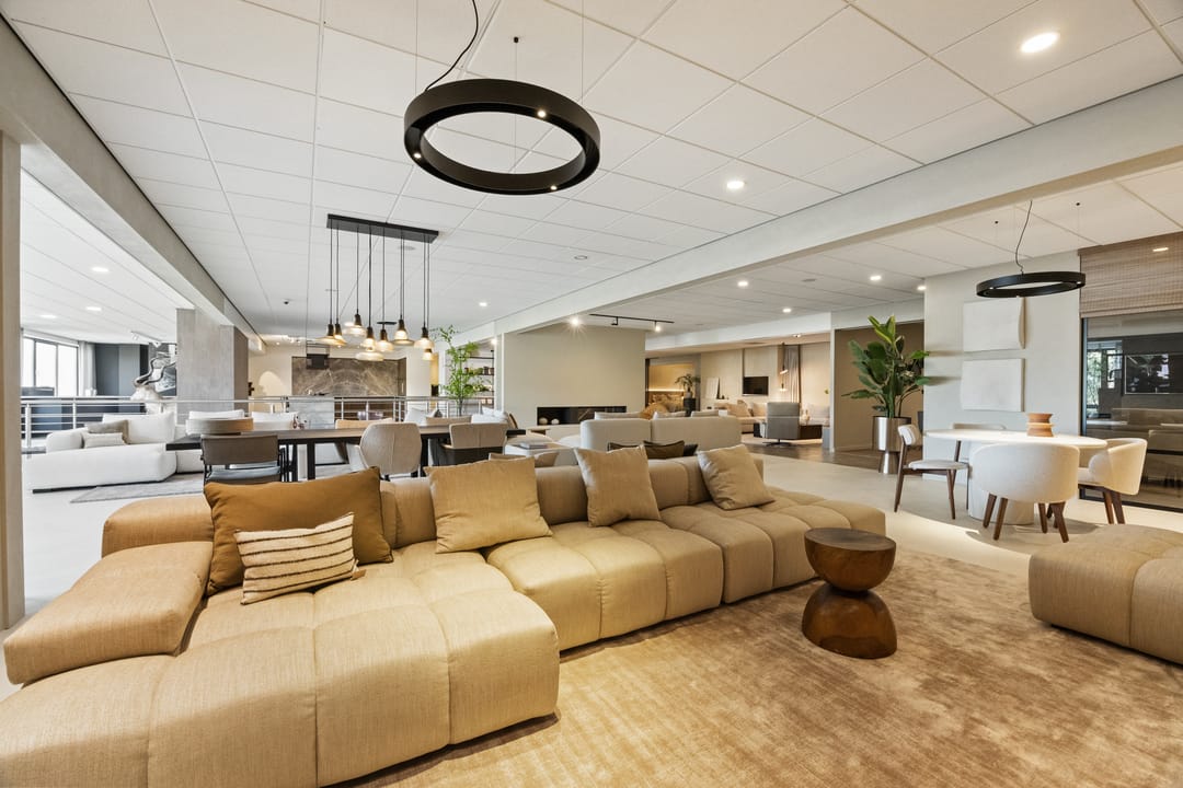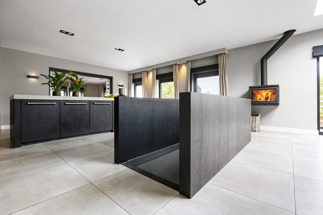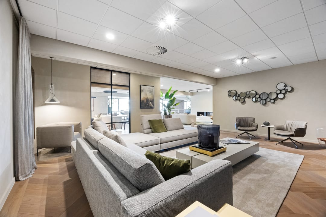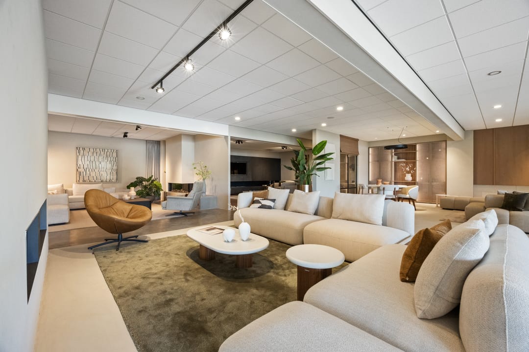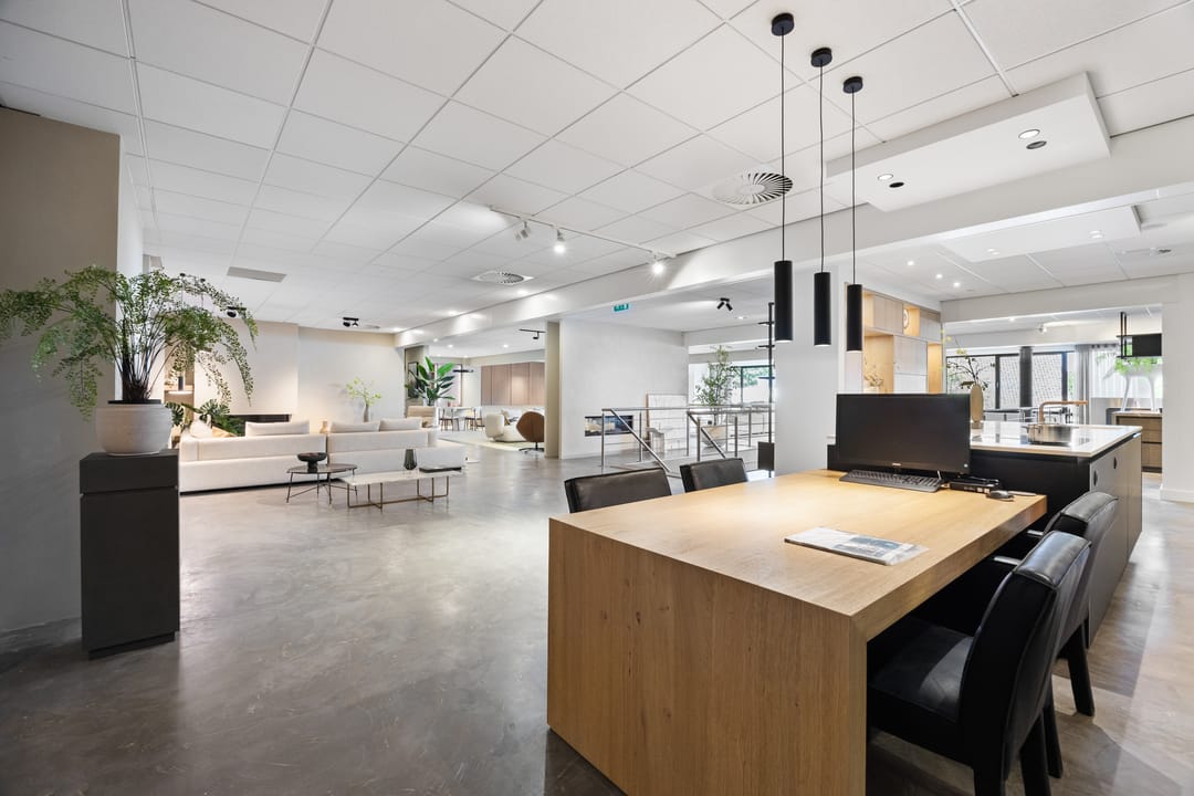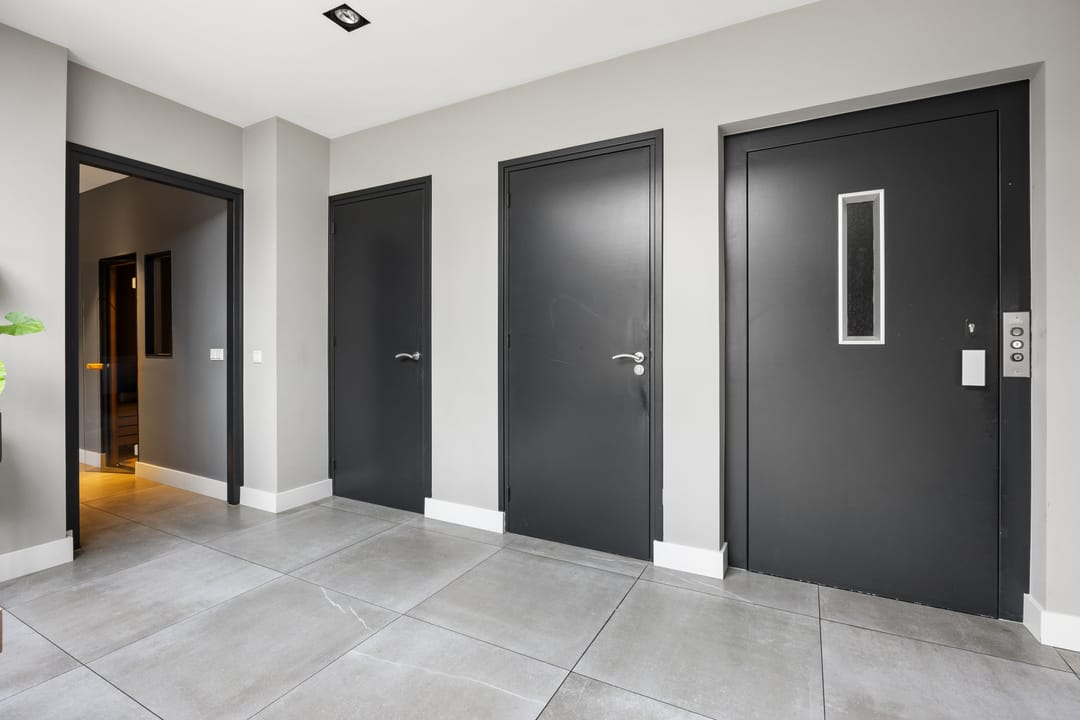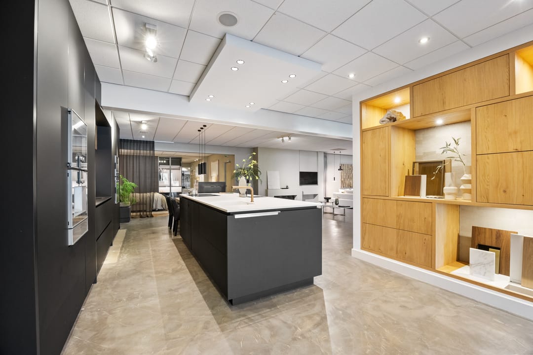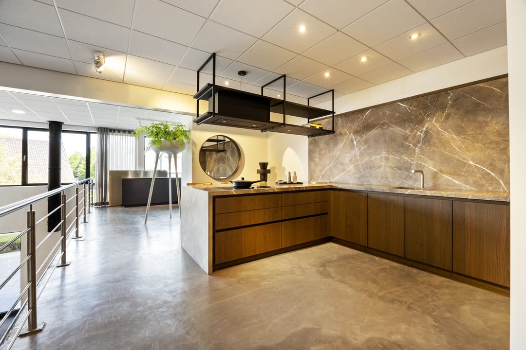 middels vaste trap en liftinstallatie bereikbaar showroom en stalenkamer.