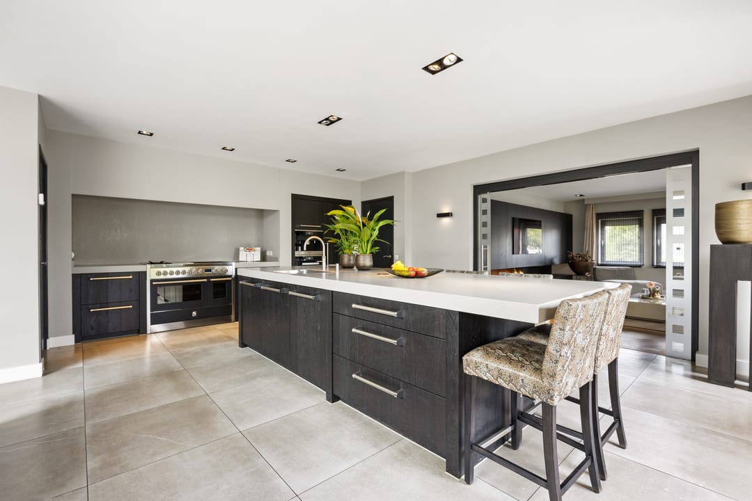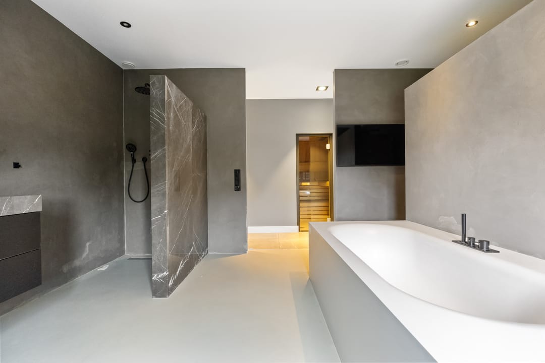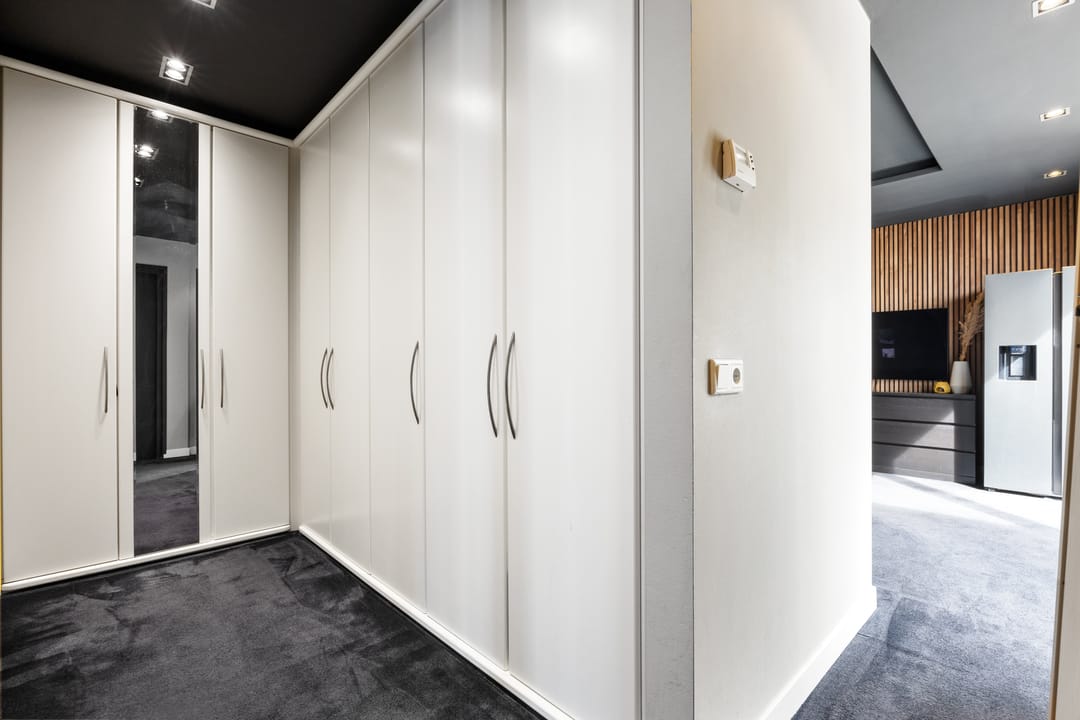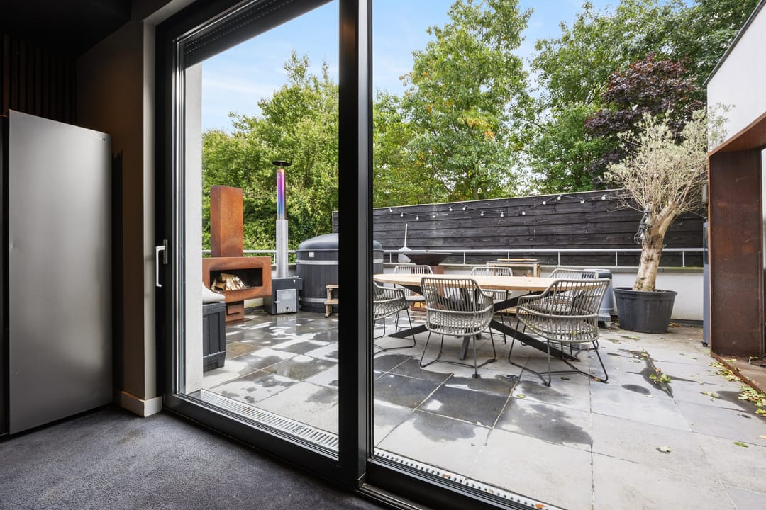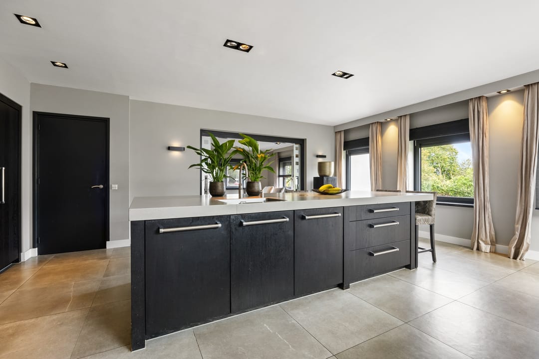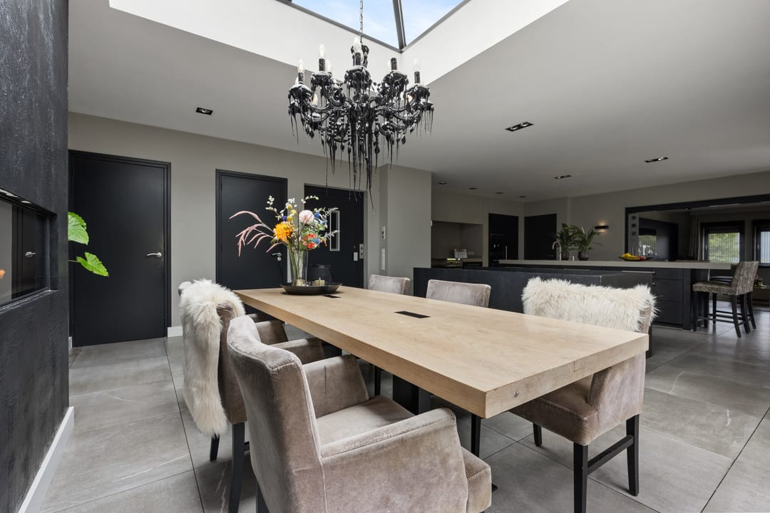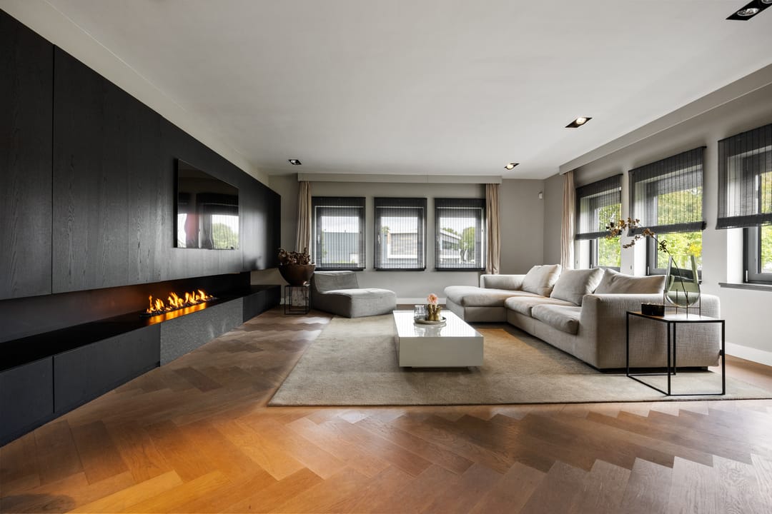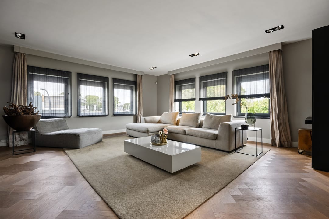 - overloop met glazen dak, balkon, toilet met vaste wastafel, urinoir en closet (zeer luxe), lift, leefkeuken met fraaie keukeninrichting met apparatuur en bergruimte, living met prachtige kasten op maat gemaakt, gang, badkamer met closet, ligbad, wastafelmeubel en inloopdouche (luxe), sauna, bergruimte, vier slaapkamers en riant terras;