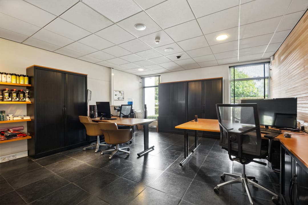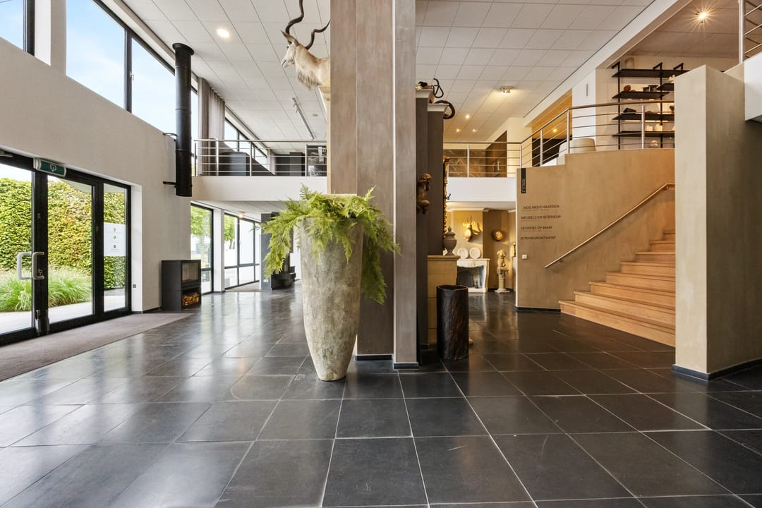 entree, showroom met vide (hoogte vide 5,81), kantoren, toiletgroep, meterkast, lift-installatie. Magazijn met separate entree en laad- en los mogelijkheid.