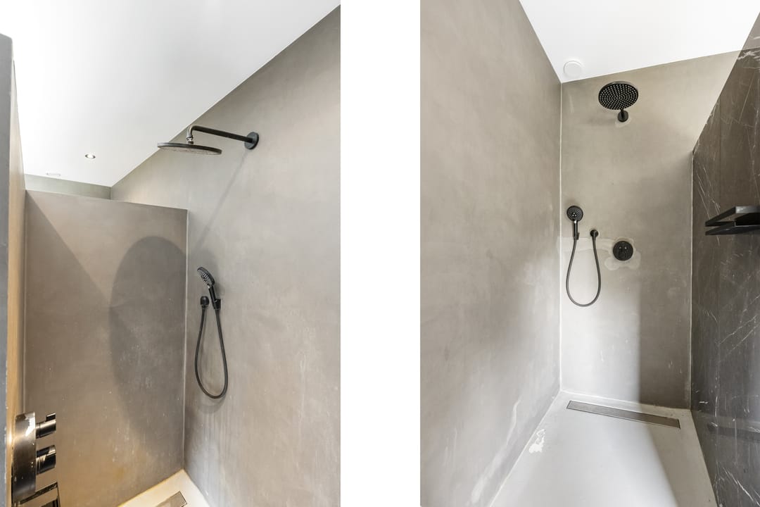 - op de tweede verdieping met vaste trap bereikbare overloop, twee slaapkamers en een dakterras, badkamer met douche, wastafelmeubel en closet.
