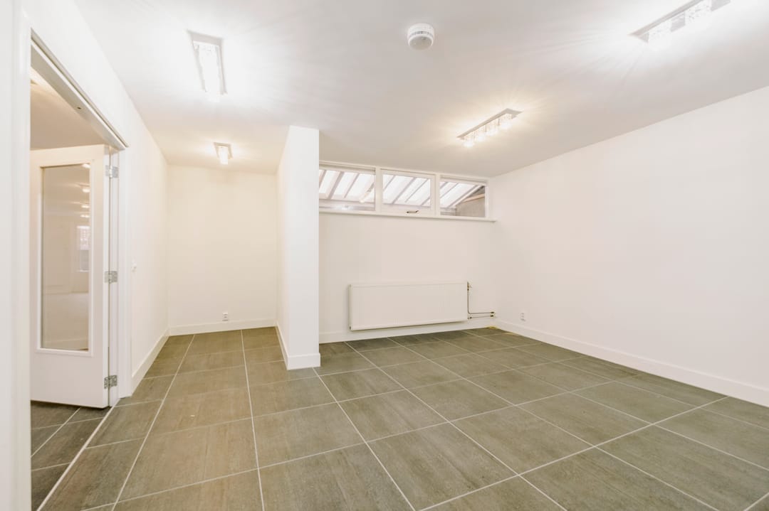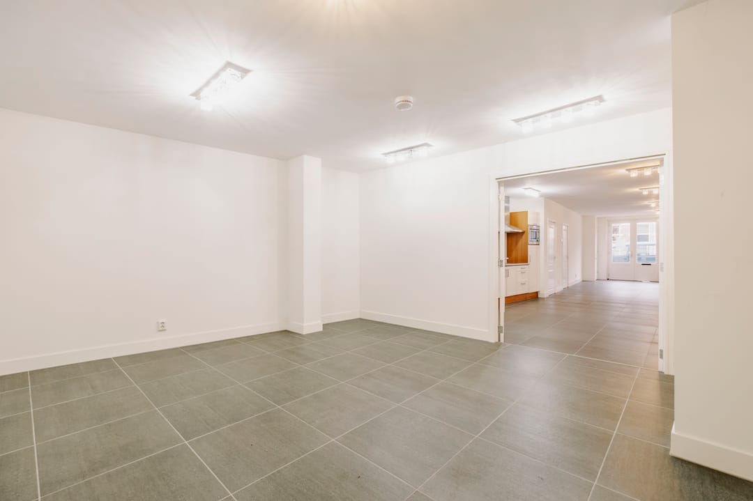 De begane grond is ingericht als kantoorruimte en is enkele jaren geleden zorgvuldig gerenoveerd. Daarbij zijn onder andere nieuwe kozijnen met dubbele beglazing geplaatst en is de ruimte voorzien van een moderne keuken, een toilet, een tegelvloer met vloerverwarming, vernieuwde elektra en strak afgewerkte wanden. De ruimte maakt een verzorgde en representatieve indruk.