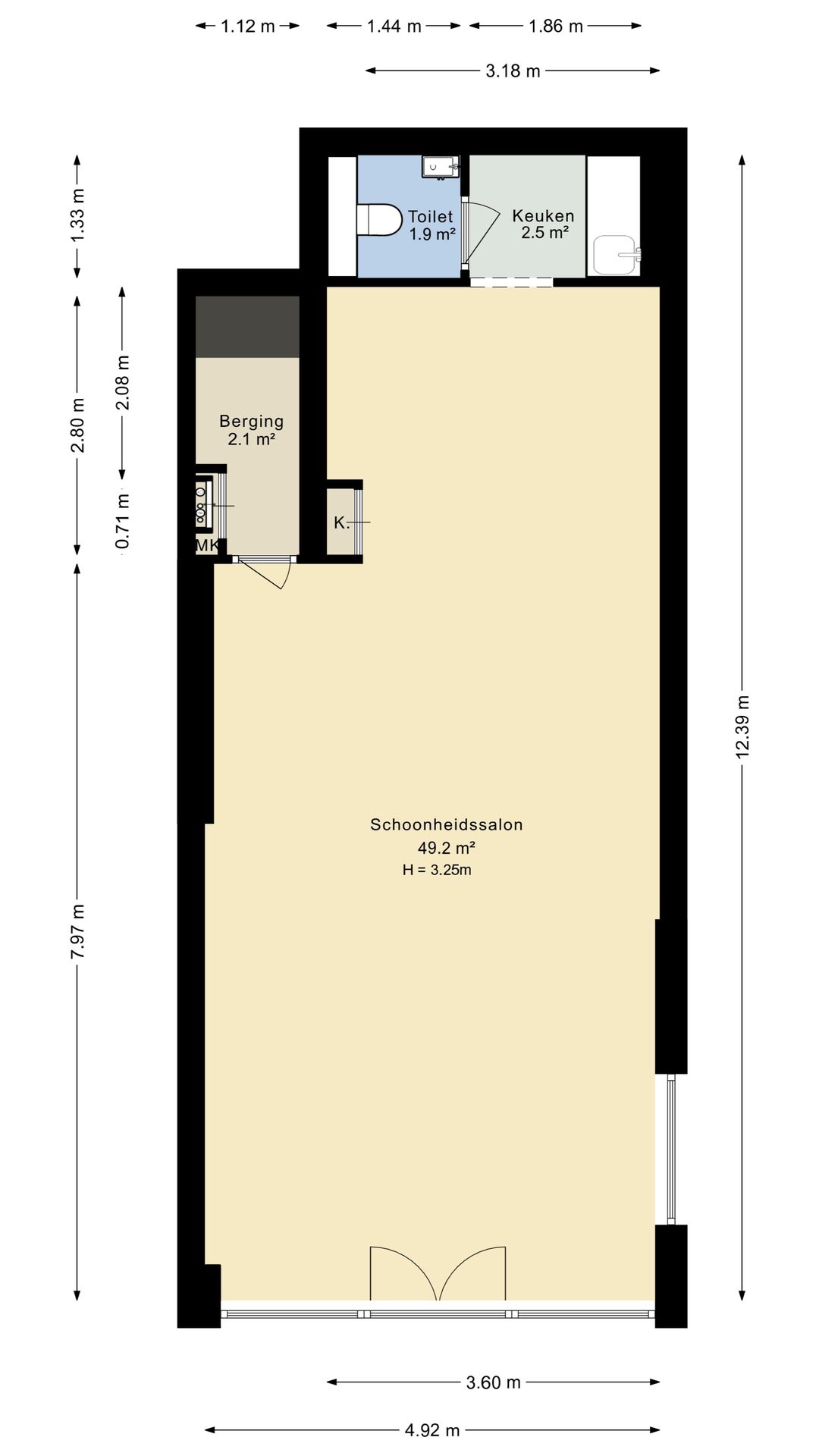 - Het pand beschikt over een berging aan de achterzijde. De m² van de berging zijn niet inbegrepen in de totale grootte.