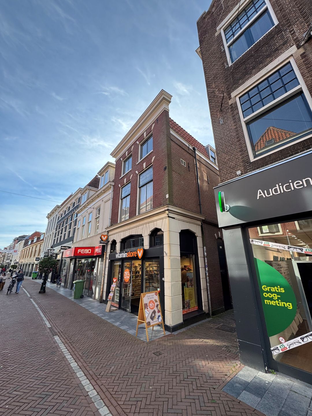 De bovengelegen woonlagen hebben een eigen toegang via de Dullebakkersteeg.