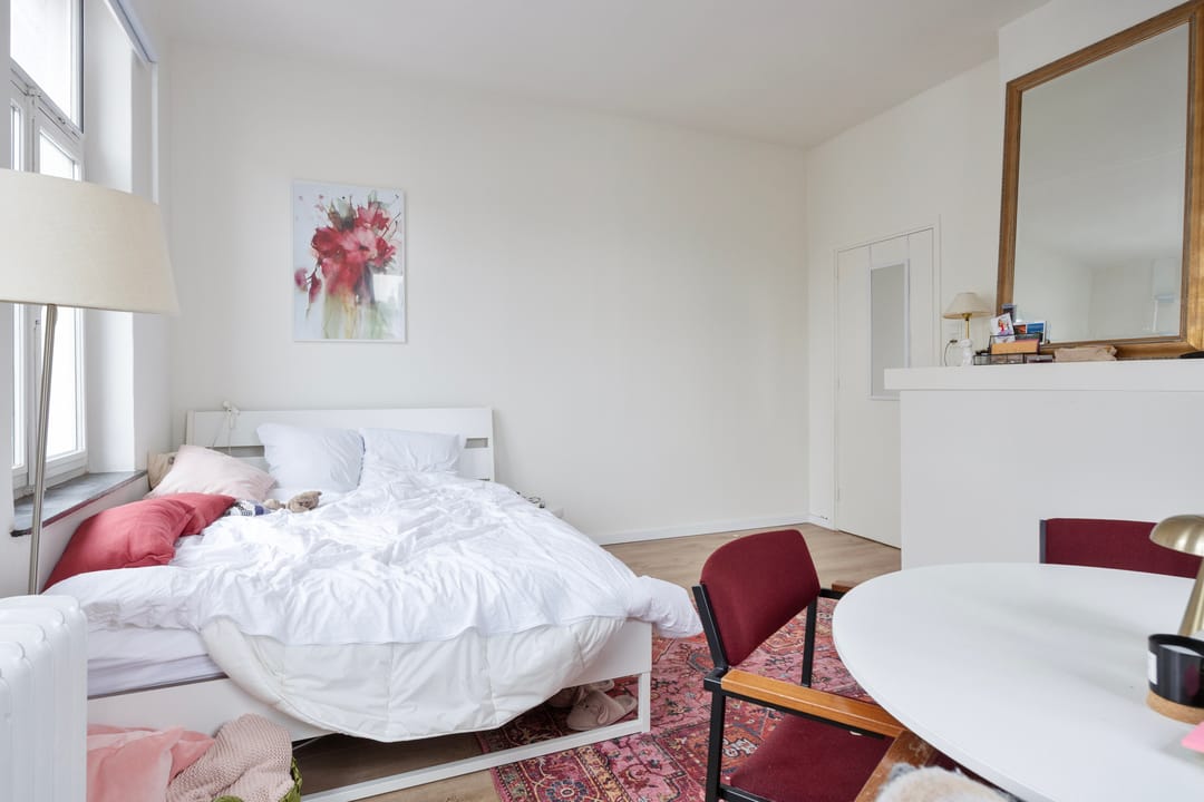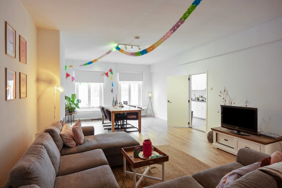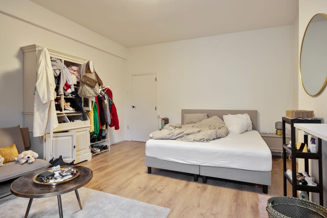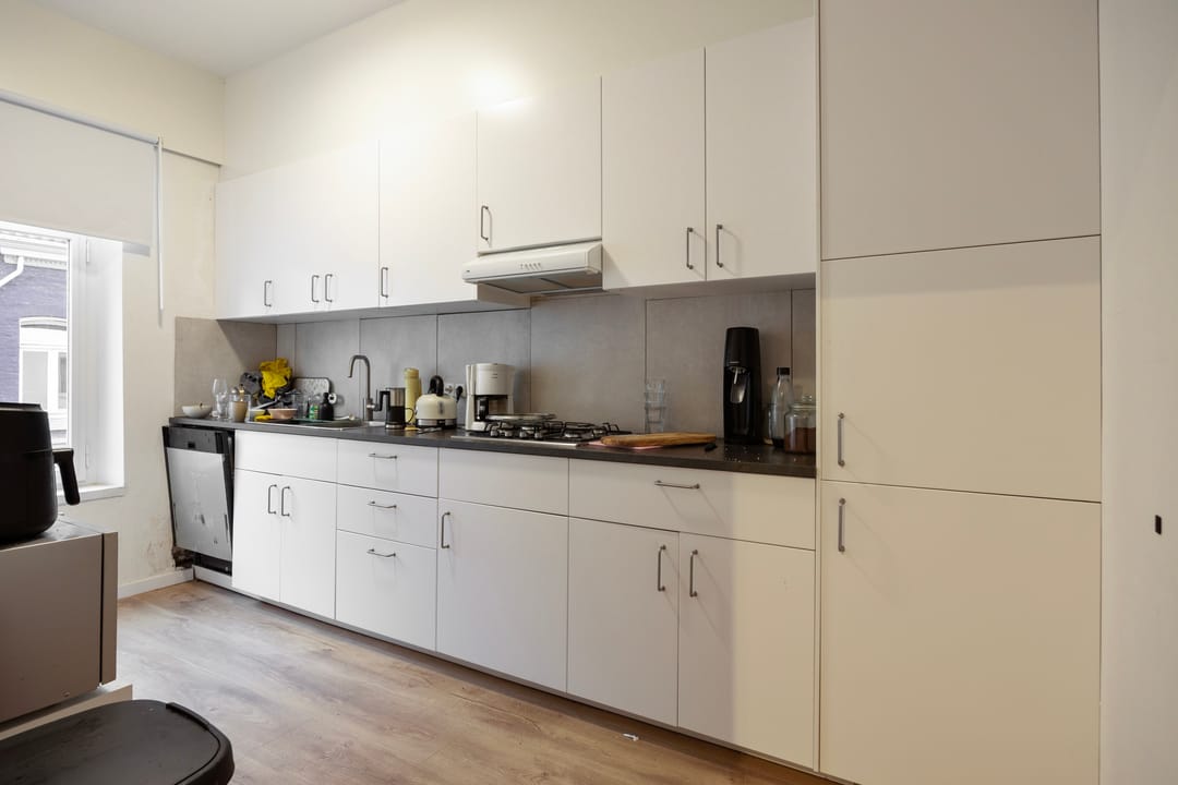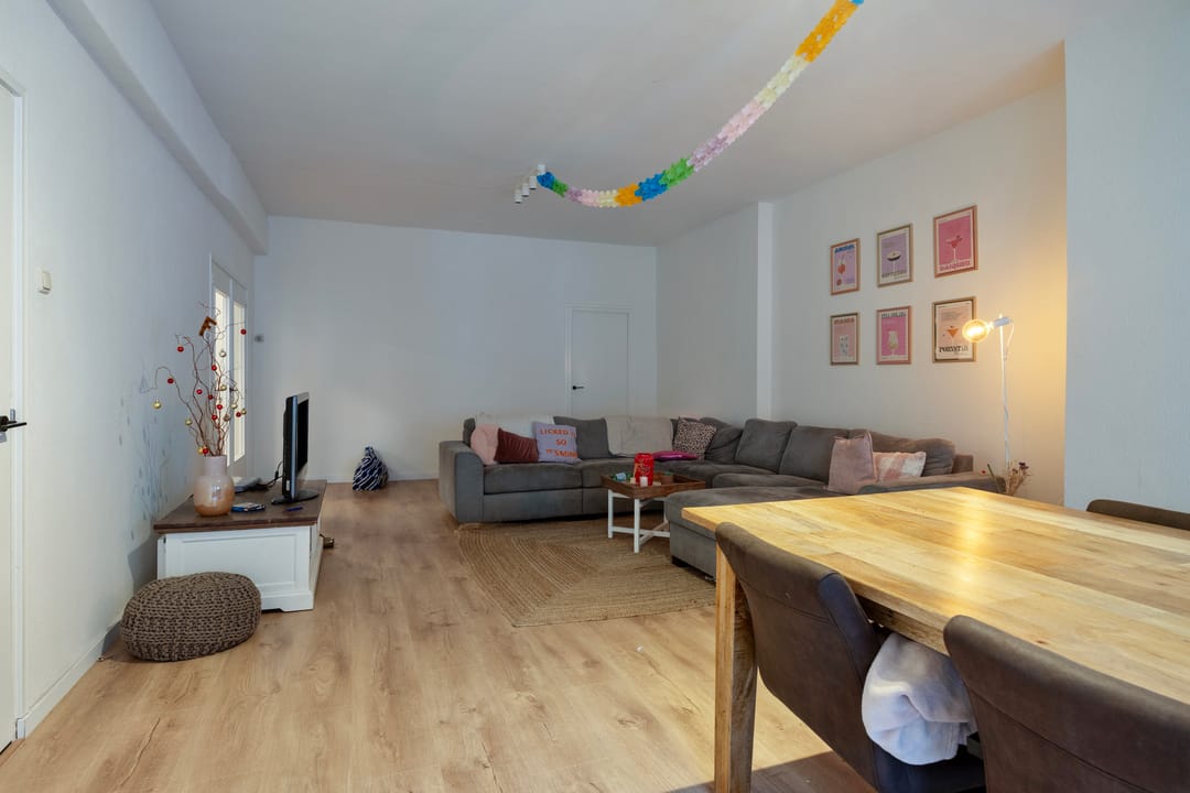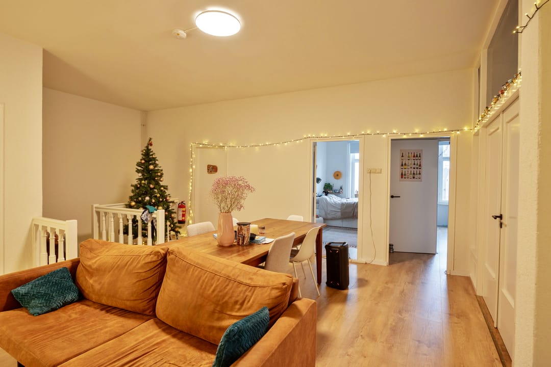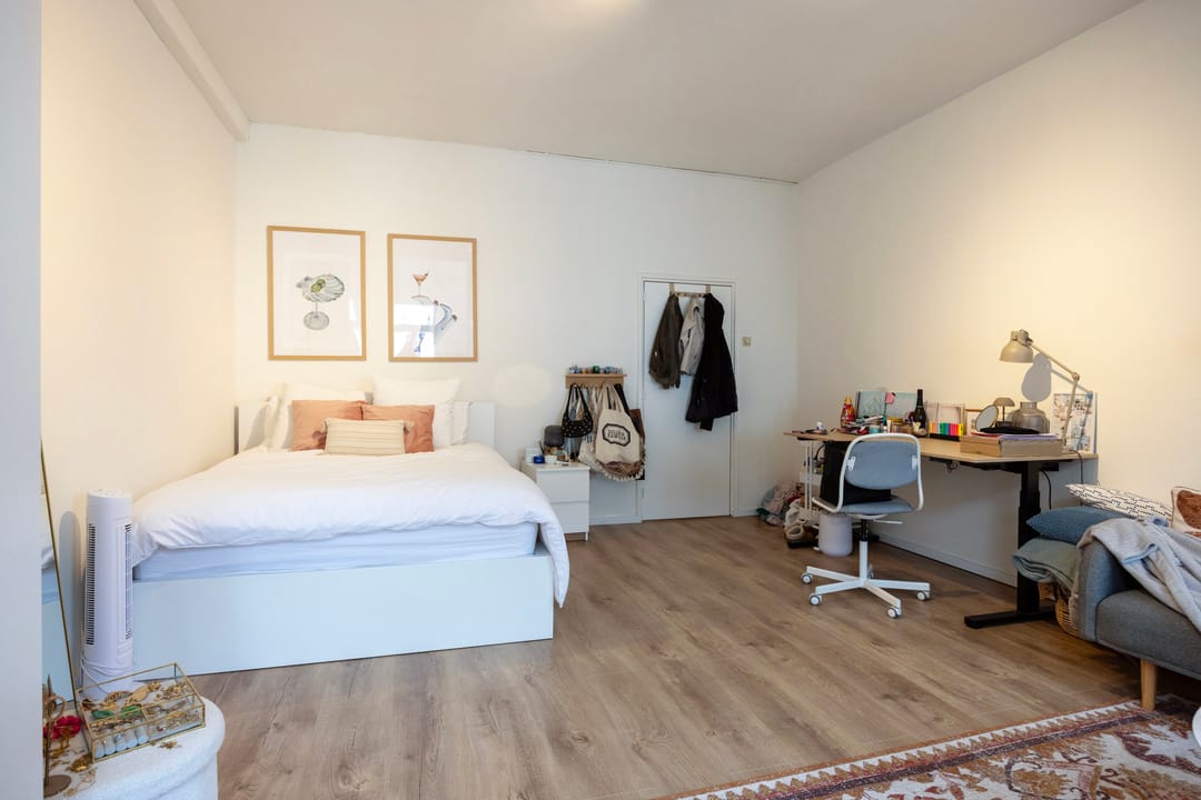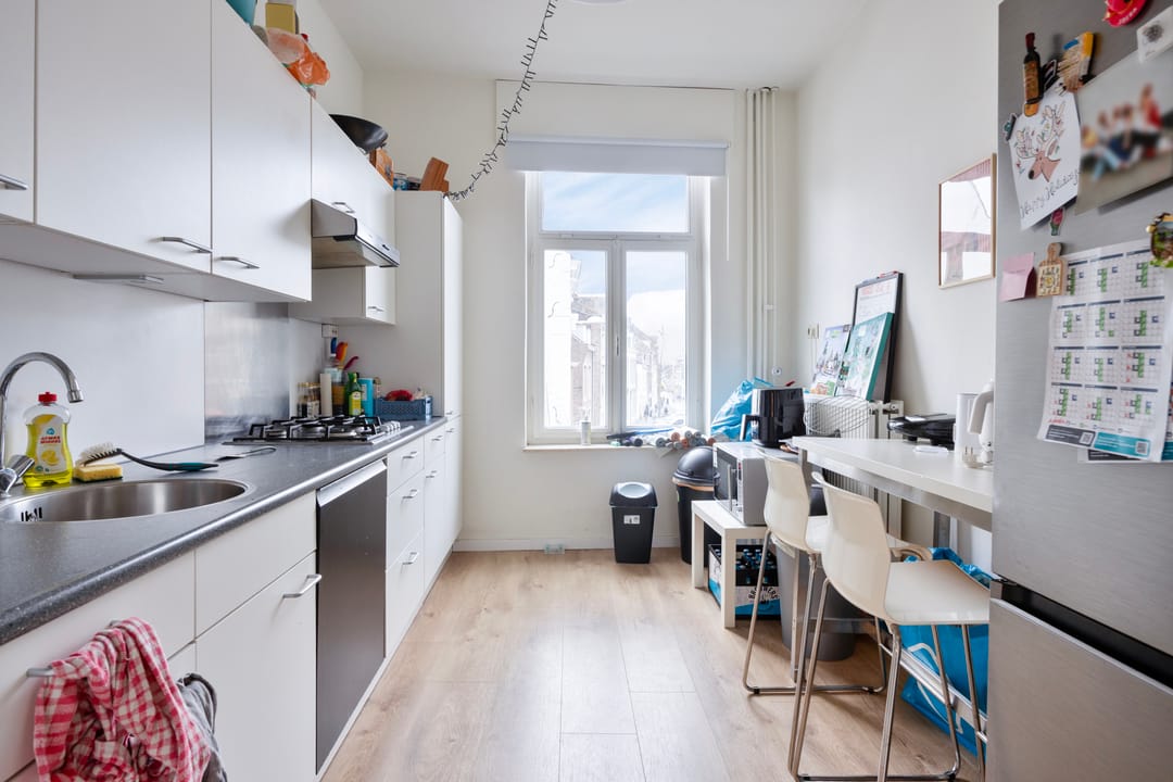 Eerste verdieping: circa 170 m2 BVO verhuurde woonruimte, bestaande uit vier kamers, gemeenschappelijke keuken, toilet en een badkamer.