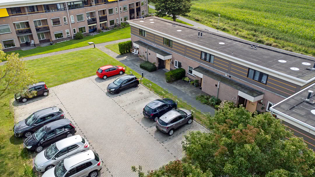 Direct grenzend aan de woningen van Nijlân II ligt op eigen grond een parkeerterrein met 16 parkeerplaatsen.