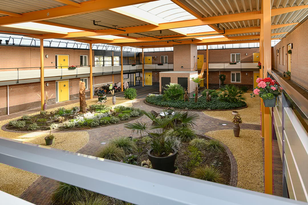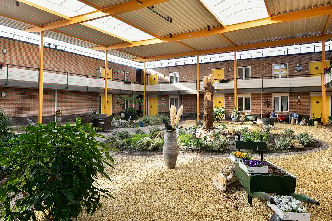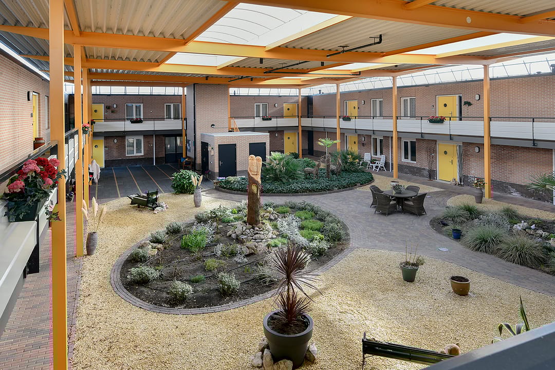 Op de begane grond is, naast de groepsruimte voor algemeen gebruik, een gezamenlijke fietsenberging aanwezig. Verder is het complex voorzien van een lift en beschikt het over een gezamenlijke binnentuin.