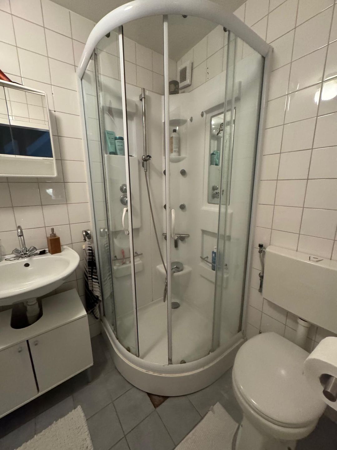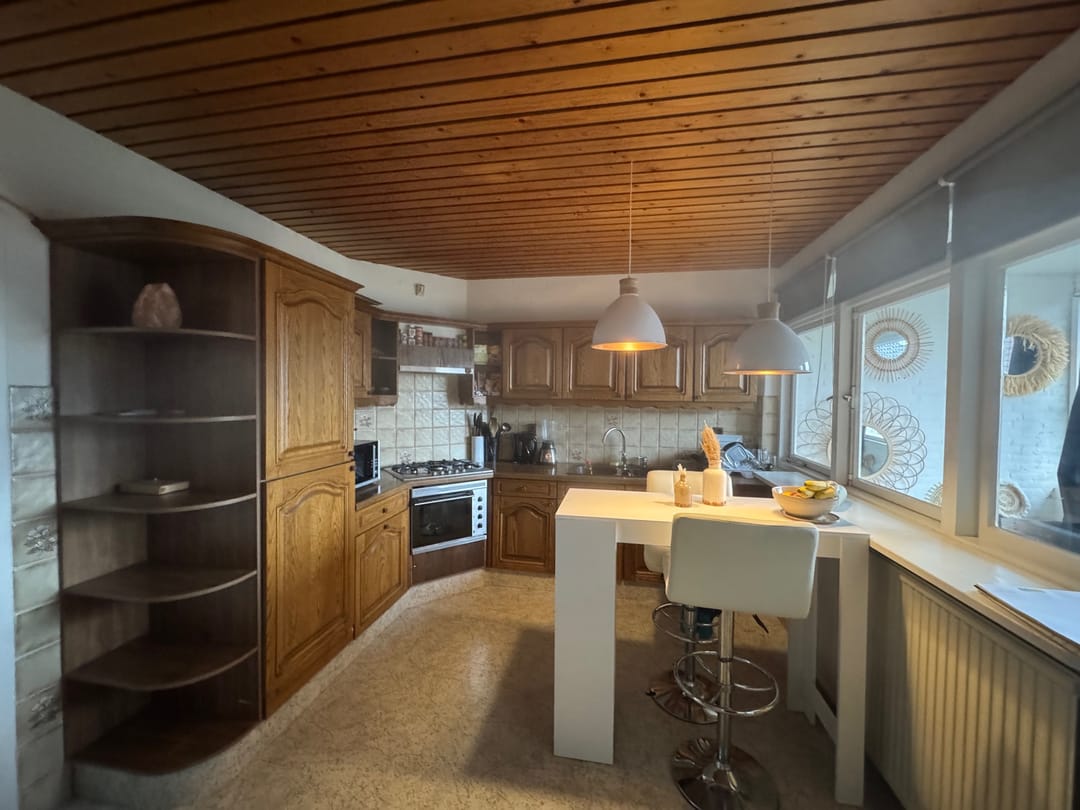 1e verdieping Dit deel van de bovenwoning is ca. 50 m2 groot. Bereikbaar via een buitentrap, het al genoemde ca.40 m2 groot terras, gemeenschappelijke entree (wordt gedeeld met de bovenwoning van de 2e verdieping). Hier is ook de meterkast geplaatst. Badkamer (3.1 m2) met toilet, douche en wastafel. Keuken (11,2 m2) met loggia (6 m2). Slaapkamer (16 m2), woonkamer (20 m2).