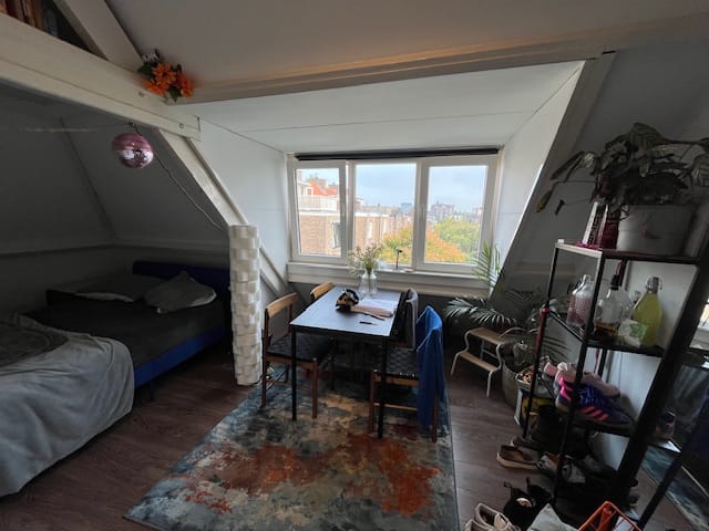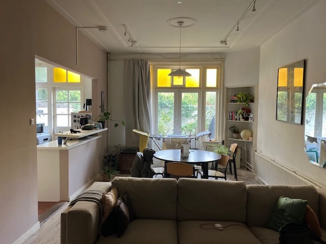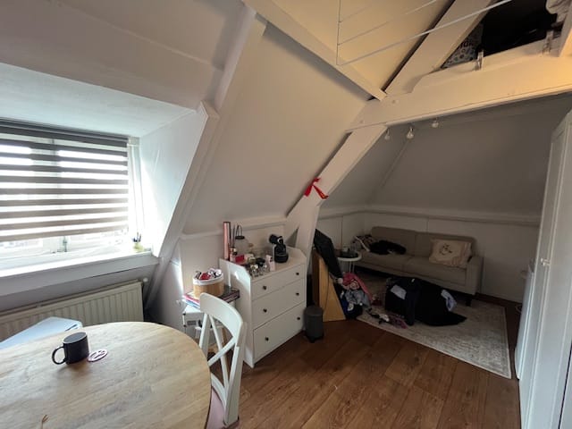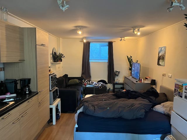 Studio in het souterrain met eigen voorzieningen en eigen toegang via de voortuin.