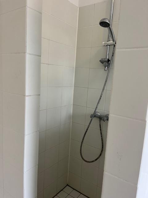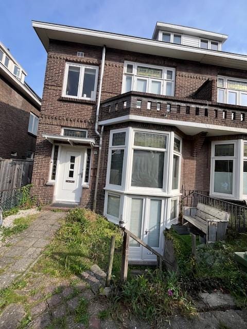 Eerste verdieping: overloop waaraan de keuken en 2 kamers, waarvan één met toegang tot balkon aan de voorzijde en één met balkon aan de achterzijde. Eenvoudige ruime badkamer aan de achterzijde, voorzien van douche, bad en toilet en wastafel.