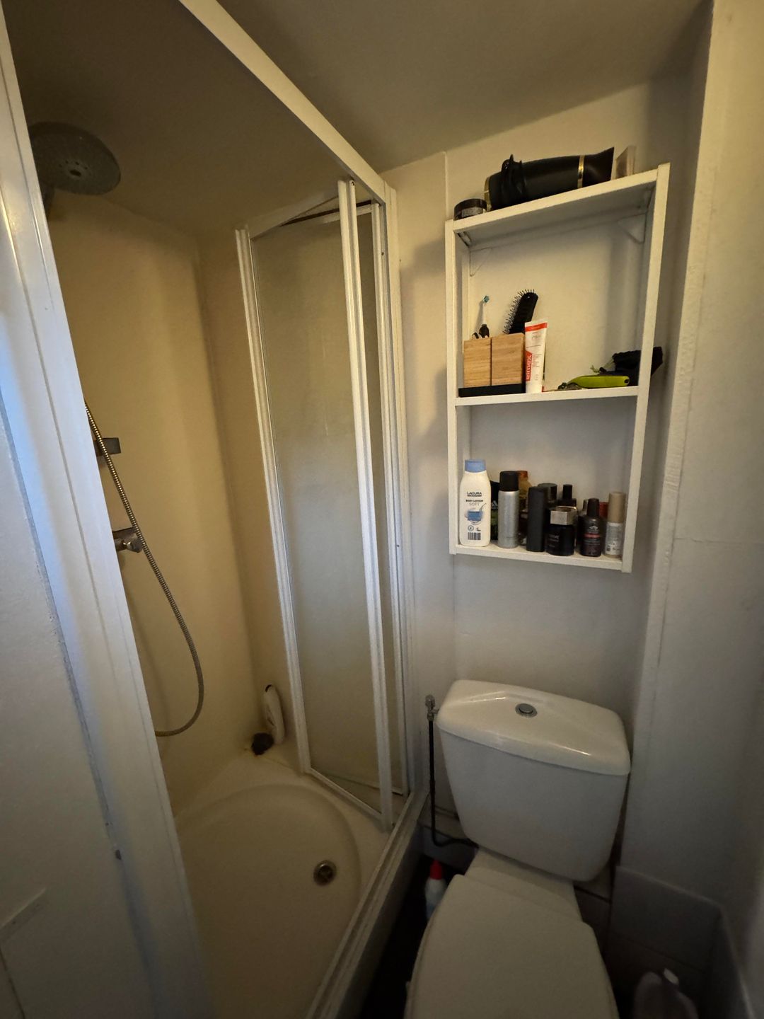 - Studio 2: woon- slaapkamer met keukenblokje, wastafel, toilet en douche (ca. 18 m2). Hier is eventueel toegang tot de zijtuin te realiseren;