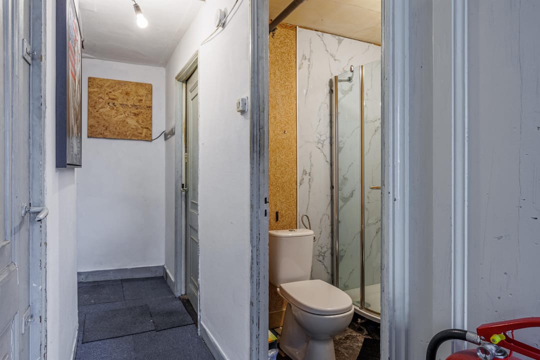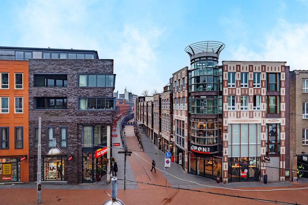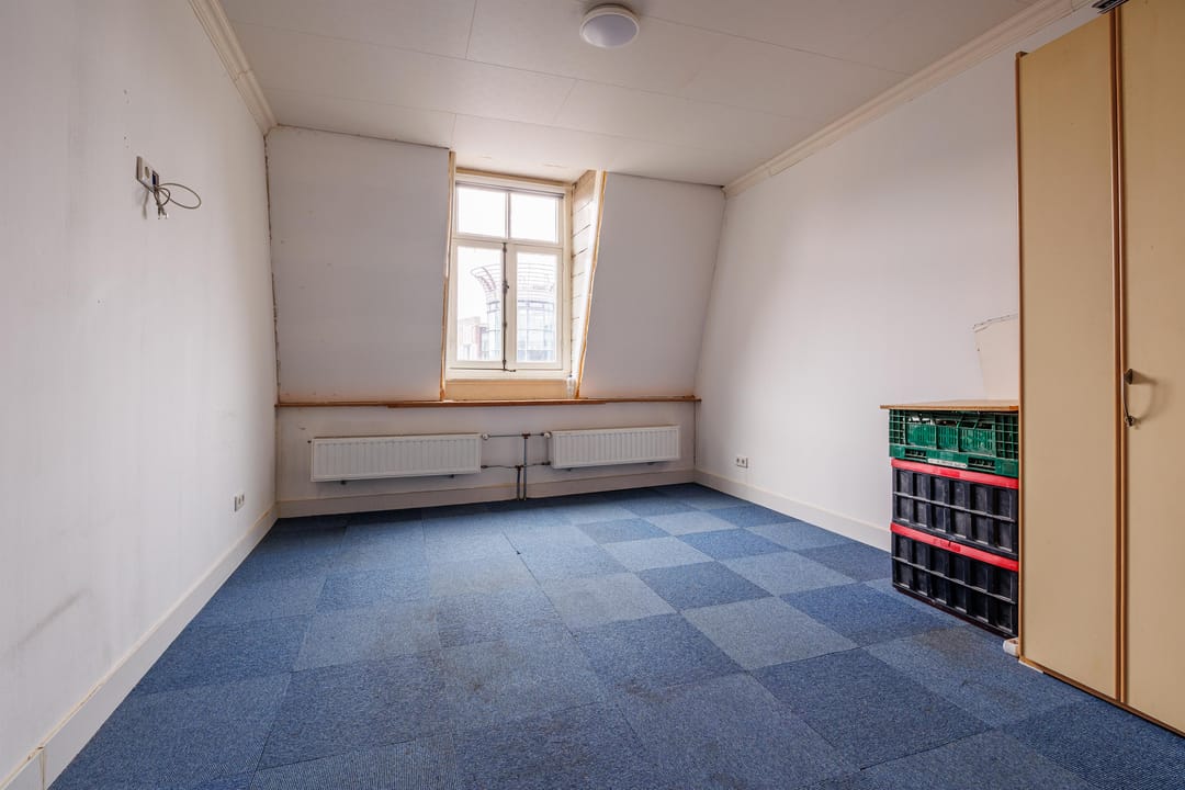 De bovenwoning, groot ca. 90 m2 BVO wordt als (bedrijfs)woning gebruikt door de zittende huurder. Deze woonruimte kan in de toekomst desgewenst naar 1, 2 of 3 studio’s / appartementen getransformeerd worden, een en ander afhankelijk van gemeentelijke vergunning(en). Onderzocht kan worden of een separate opgang gemaakt kan worden aan de straatzijde, of toegang verleend kan worden via aangrenzende panden. De woonfunctie voor de etages staat reeds opgenomen in het bestemmingsplan.