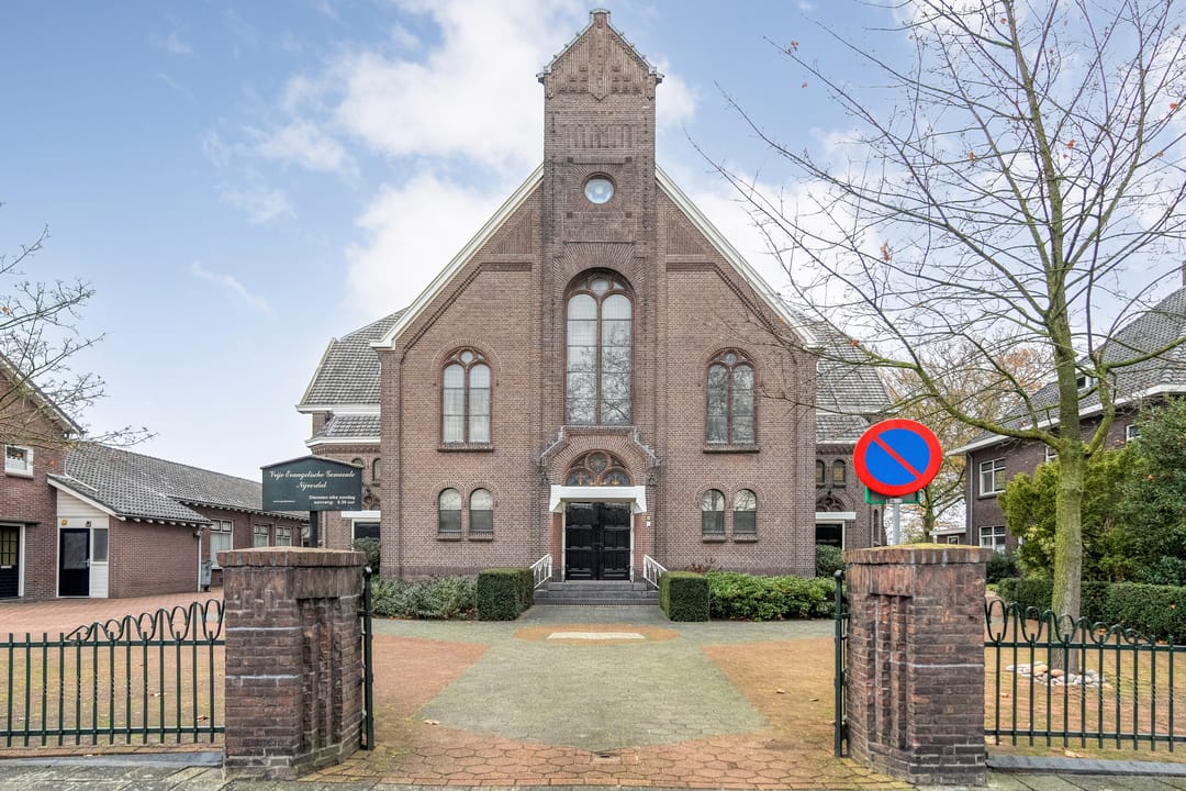 • Compleet ensemble met kerk, zalen, voormalige pastorie en kosterswoning