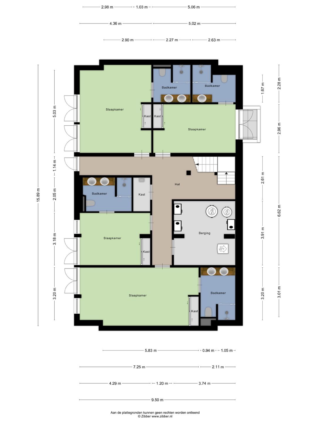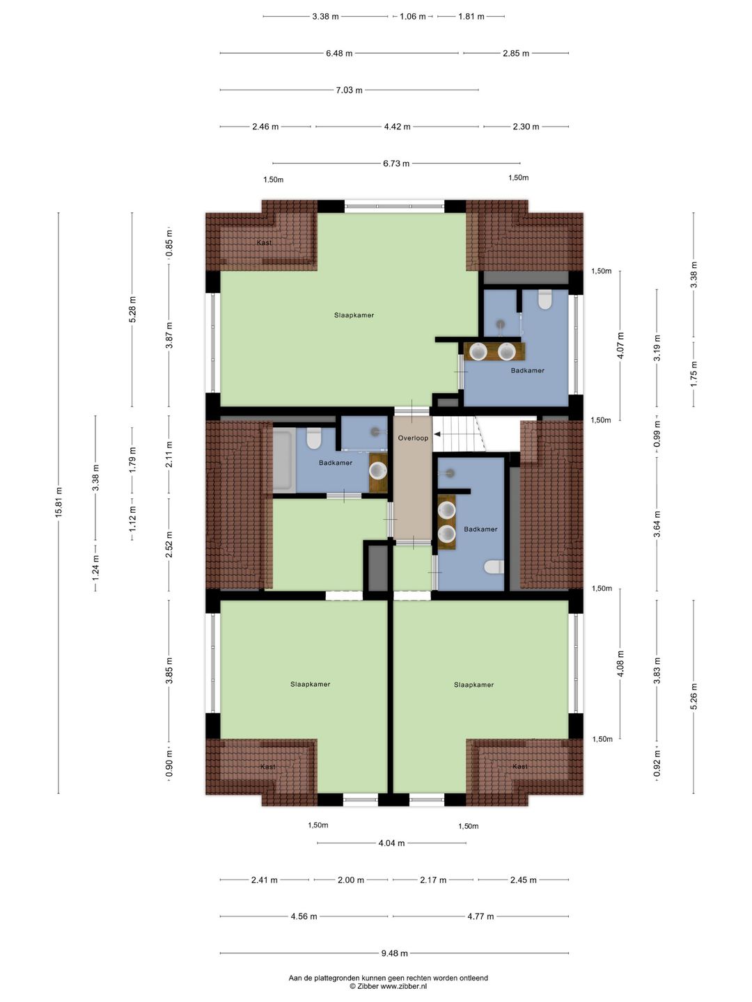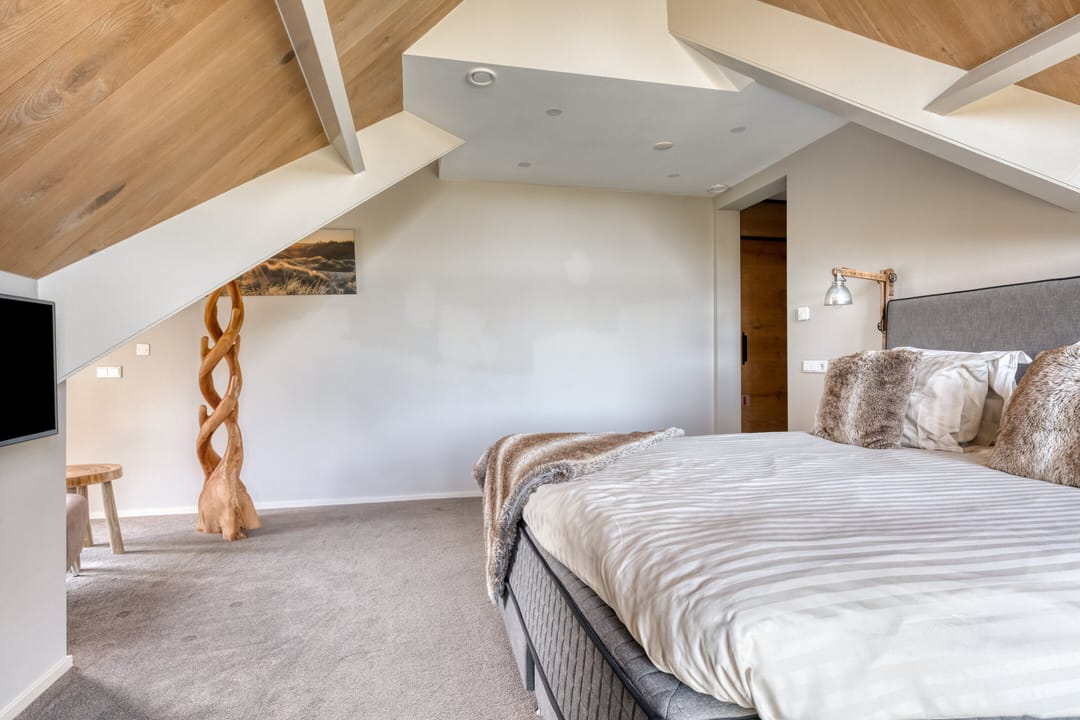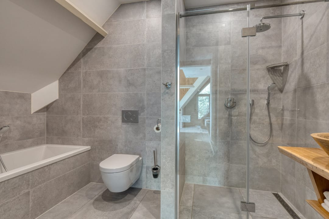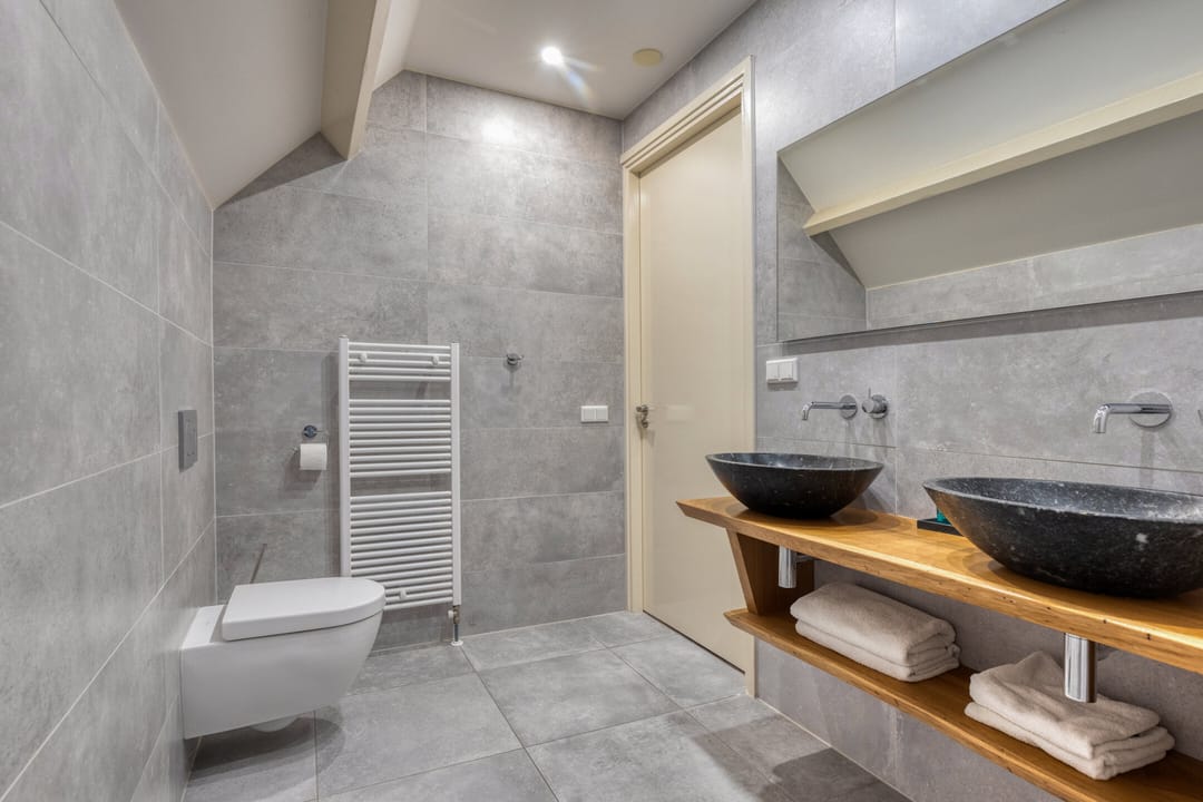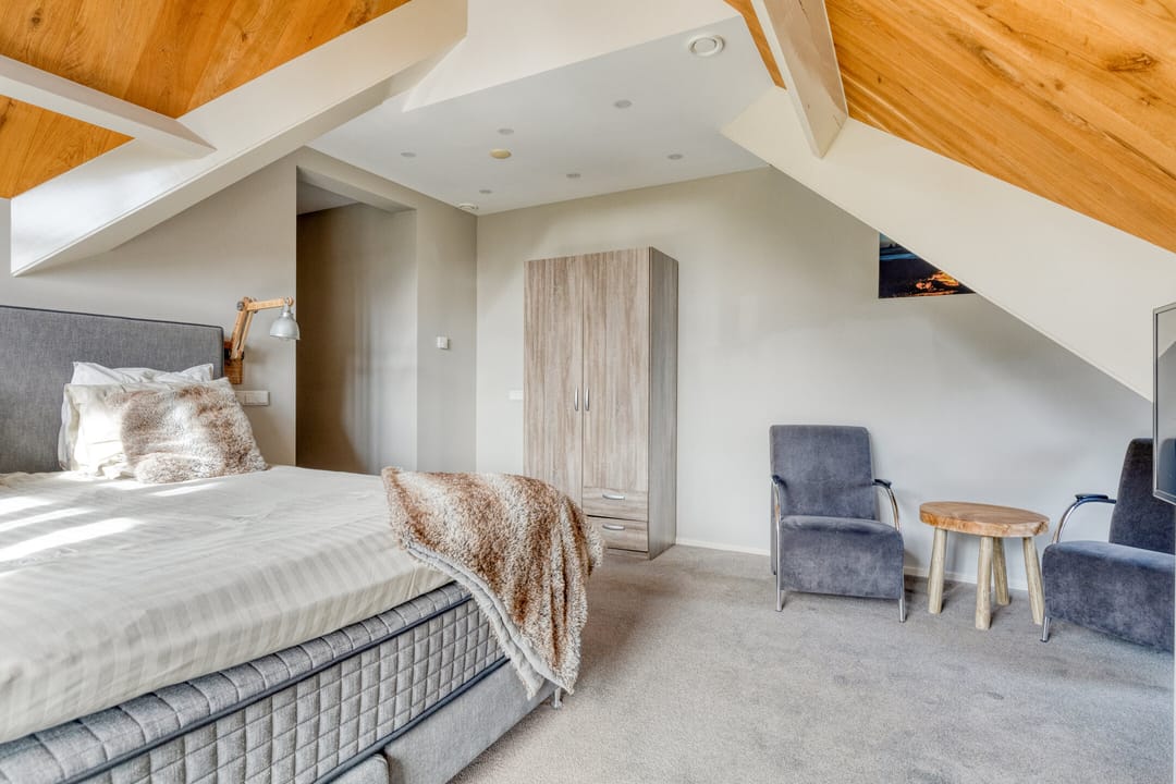 De derde kamer beschikt enkel over een tweepersoonsbed. Alle kamers zijn afgewerkt met zachte vloerbedekking, wat zorgt voor een warme en aangename sfeer. Daarnaast is er praktische opbergruimte aanwezig. Elke slaapkamer beschikt over een eigen badkamer met douche, wastafel en toilet. Eén van de badkamers is bovendien voorzien van een ligbad, wat zorgt voor extra comfort en luxe. Deze verdieping is perfect voor gezinnen met kinderen of voor gasten die wat meer rust en privacy wensen.