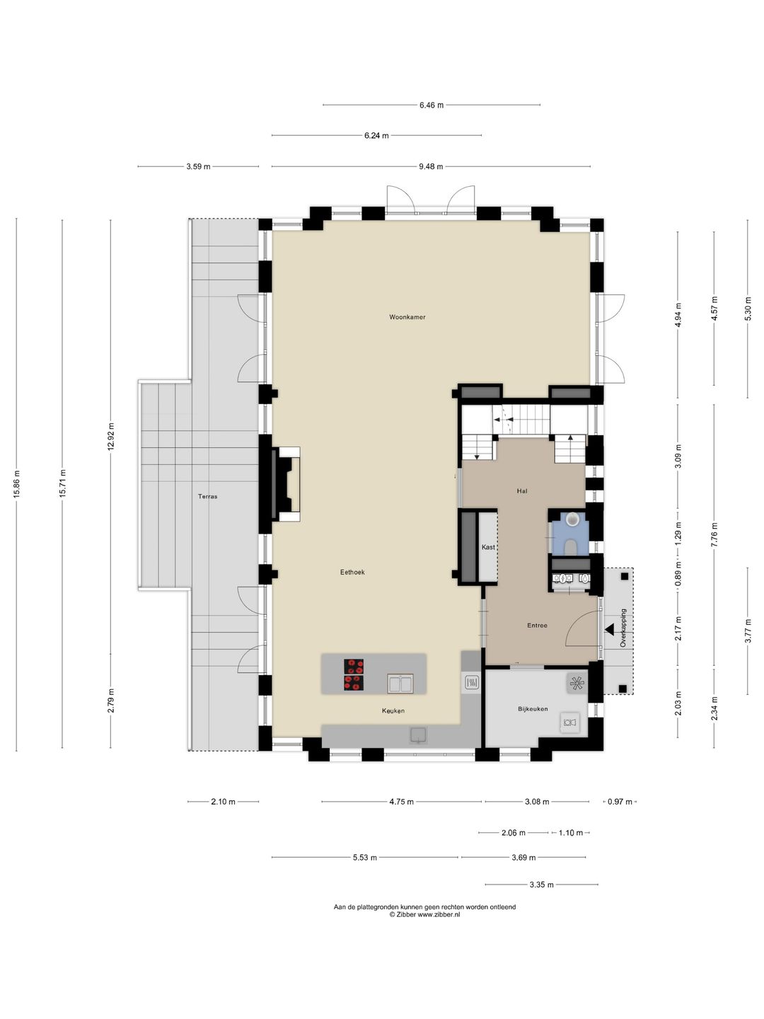 Via een prachtige eikenhouten deur betreedt u de woning. In de hal bevinden zich het separate toilet, de bijkeuken met opstelplaats voor de wasapparatuur en het trappenhuis naar het souterrain en de eerste verdieping. De gehele verdieping is voorzien van een fraaie natuurstenen vloer, wat bijdraagt aan de luxe en stijlvolle uitstraling van de woning. Vanuit de hal heeft u via openslaande deuren toegang tot de keuken, en middels eikenhouten schuifbare loft deuren bereikt u de sfeervolle woonkamer.