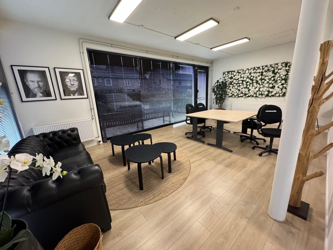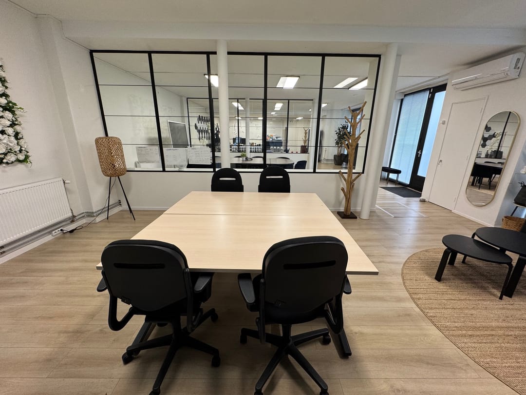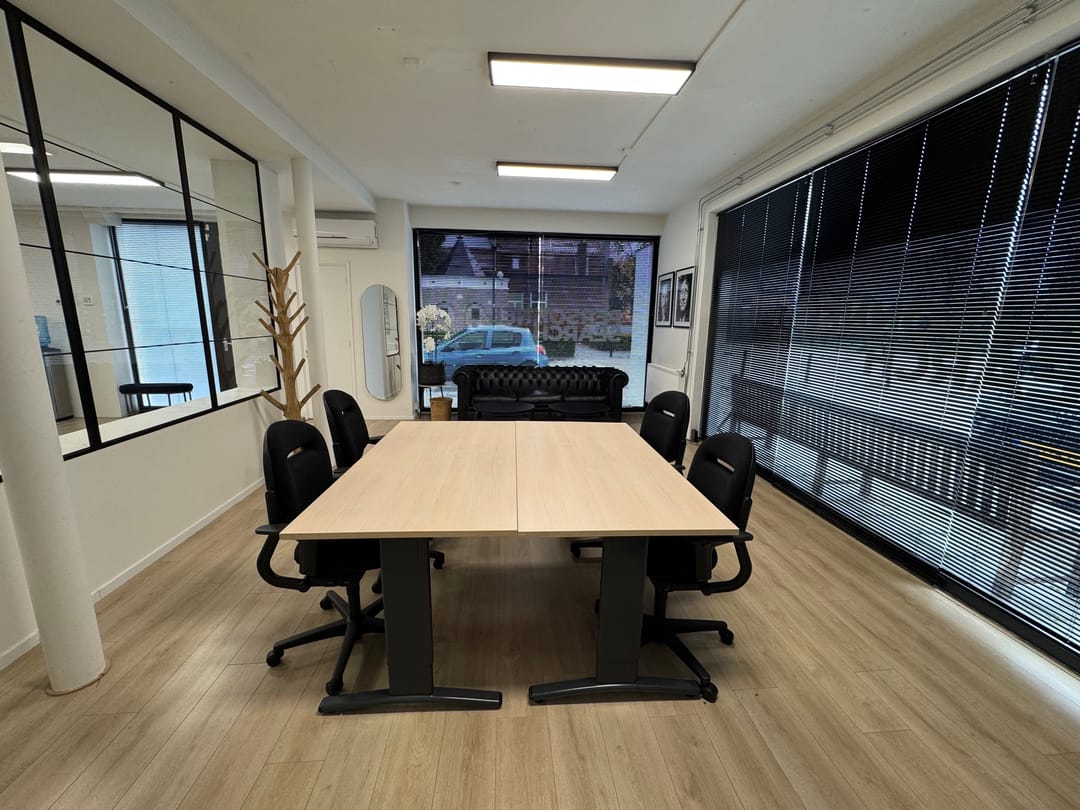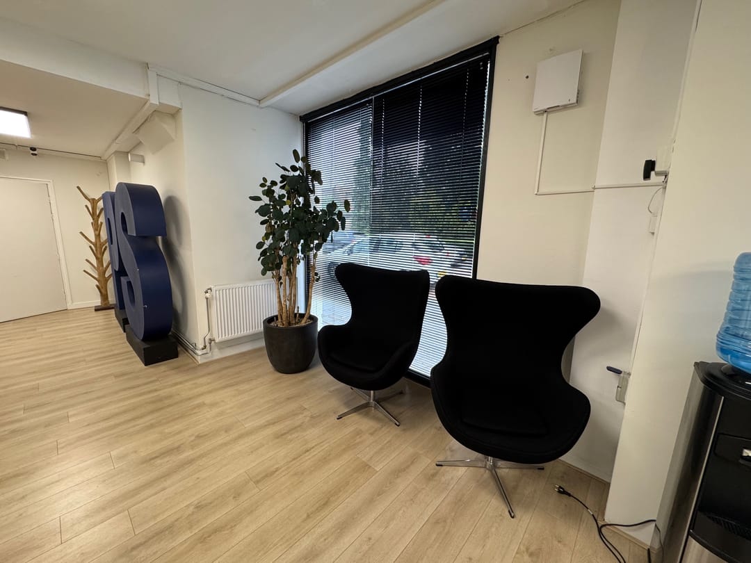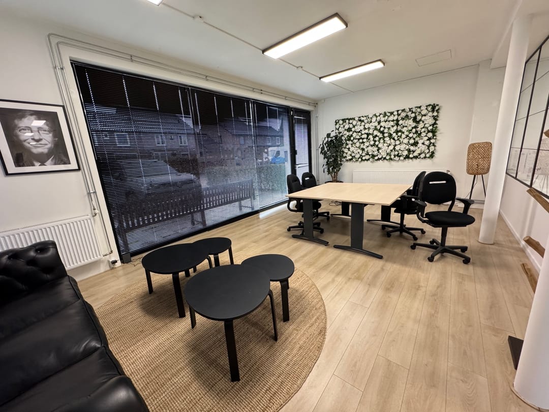 Kantoor begane grond en vier kamers verdeeld over de 1e en 2e verdieping.