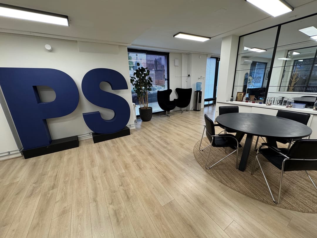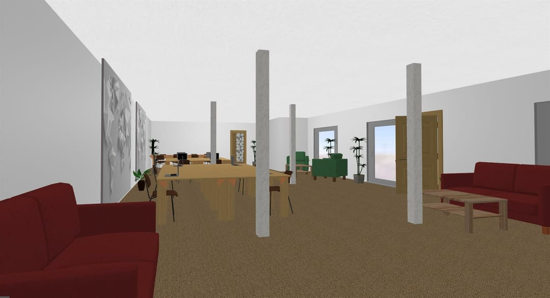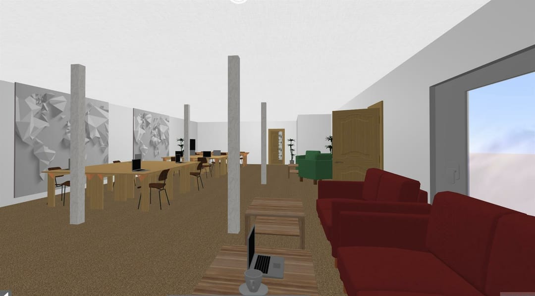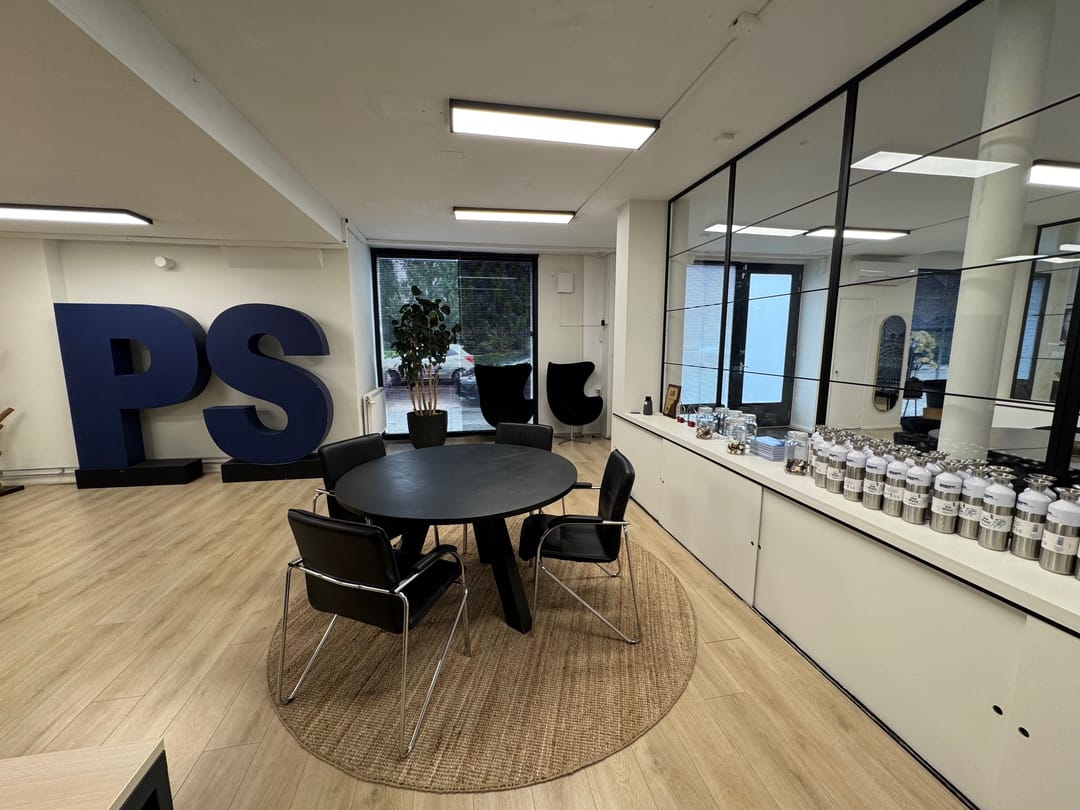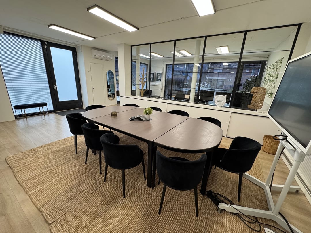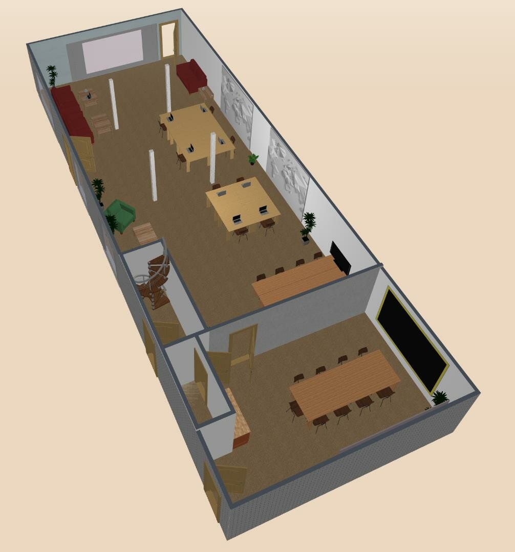 Kantoor begane grond en vier kamers verdeeld over de 1e en 2e verdieping.