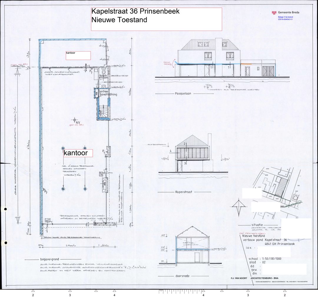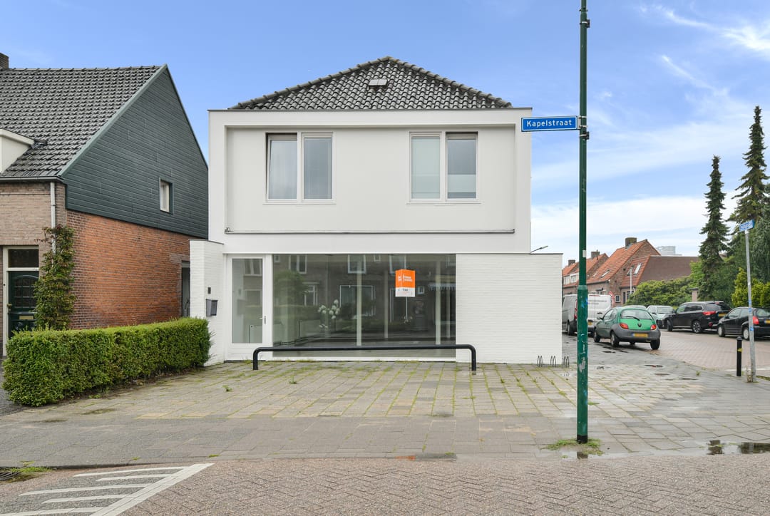 Aan de Kapelstraat 36 op de hoek met de Pasquelaan 1 bieden wij een kantoor-/praktijkruimte aan van ca. 150 m² met bovenwoning, waarin 4 studio's zijn gesitueerd.