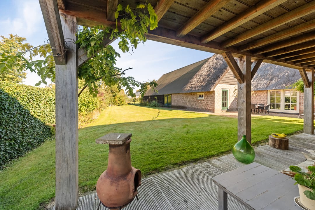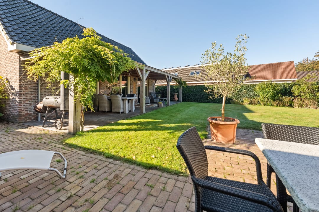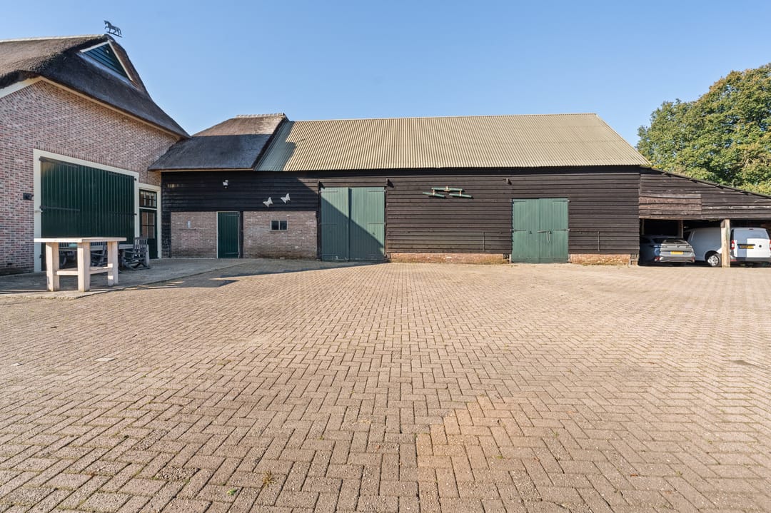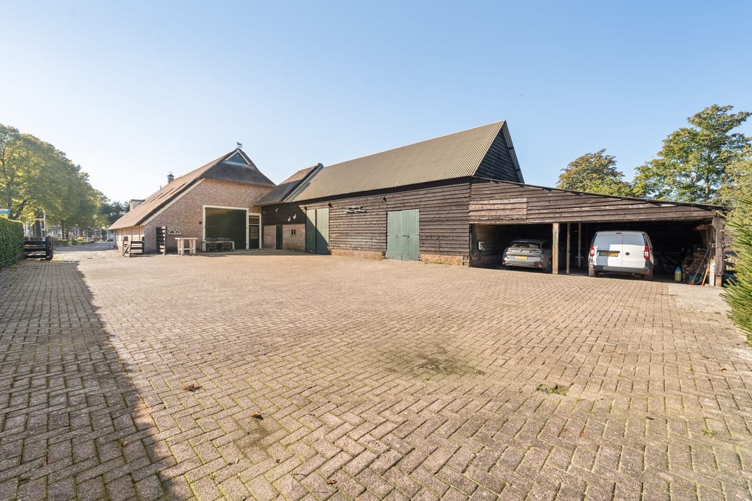 De ruime bijgebouwen, waaronder een kapschuur en carport, bieden meer dan voldoende parkeerruimte, ook voor campers, caravans of boten. De tuin is met zorg aangelegd en vormt een rustige plek om te genieten van deze bijzondere locatie.