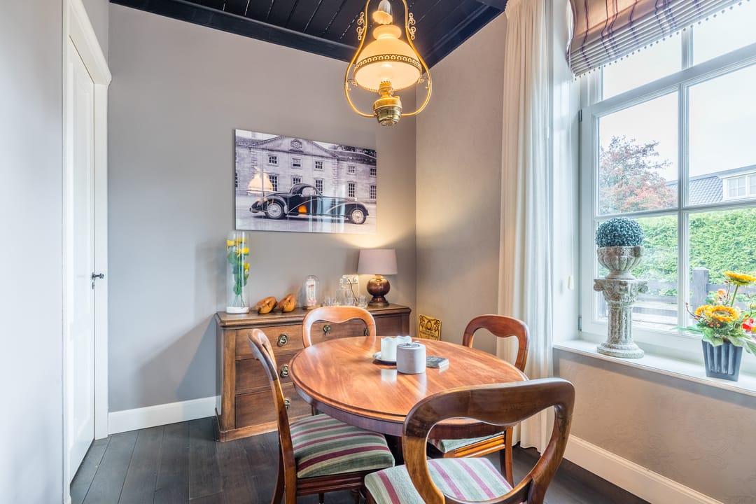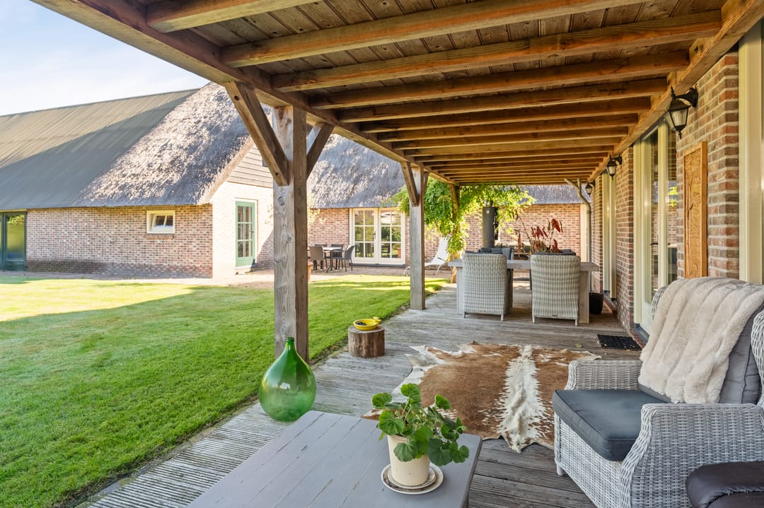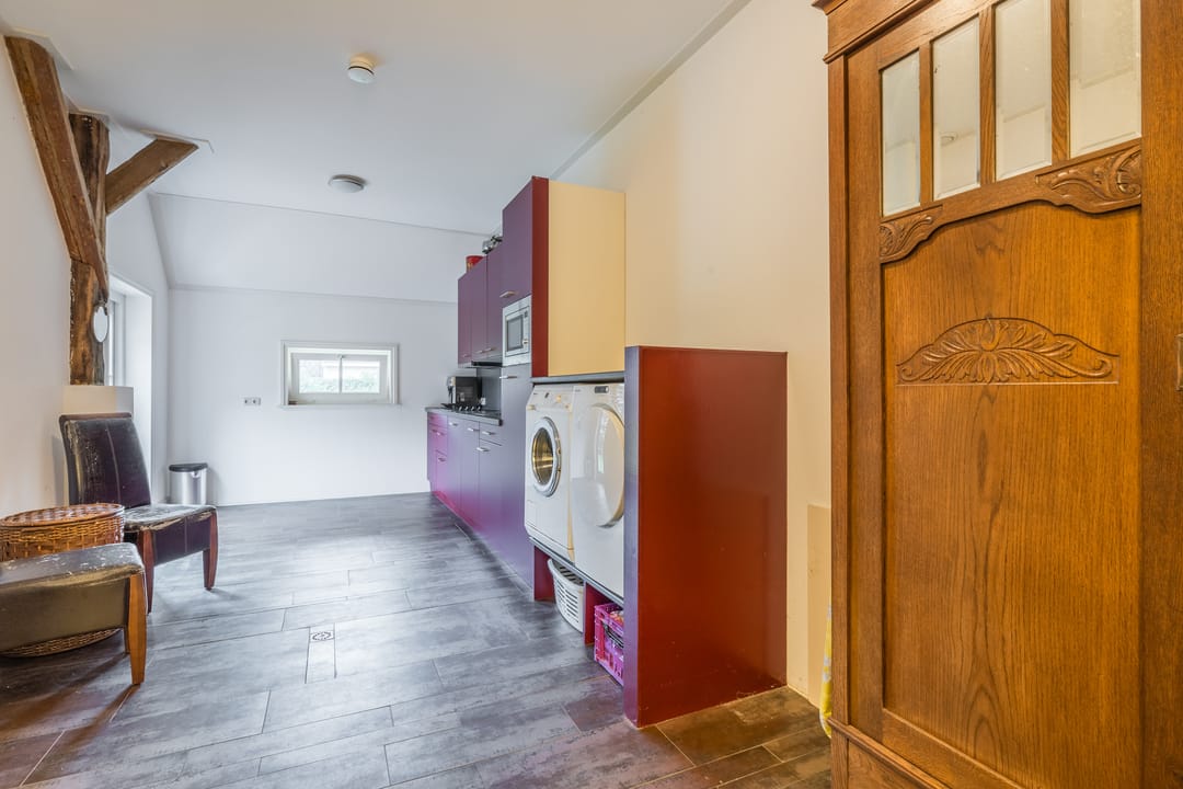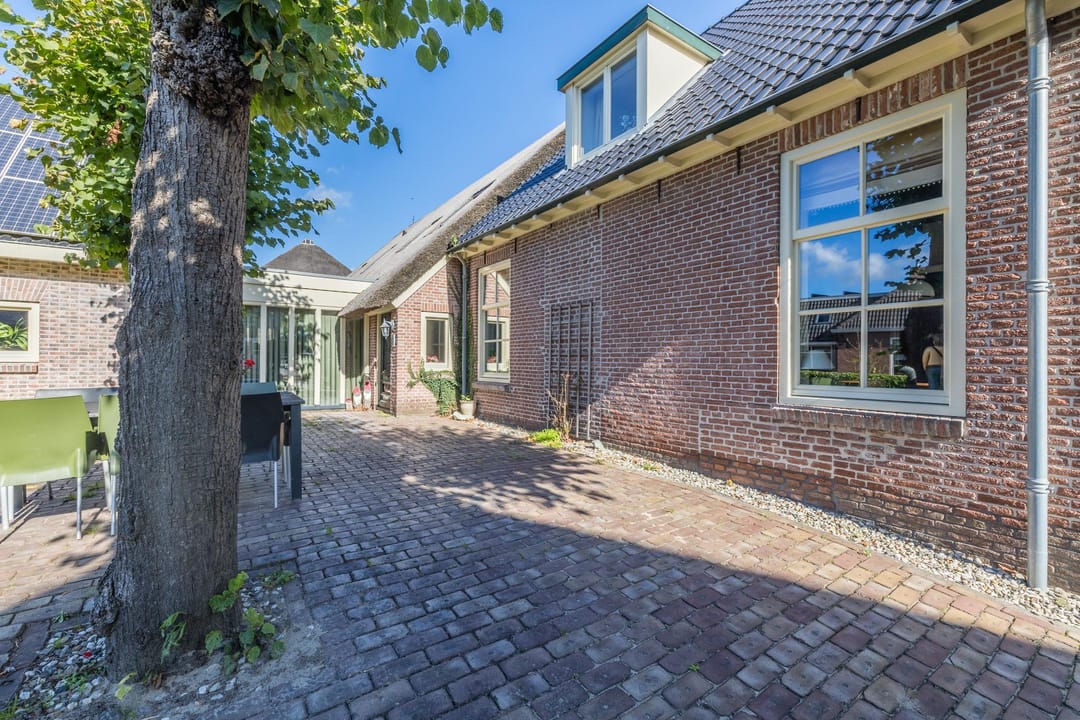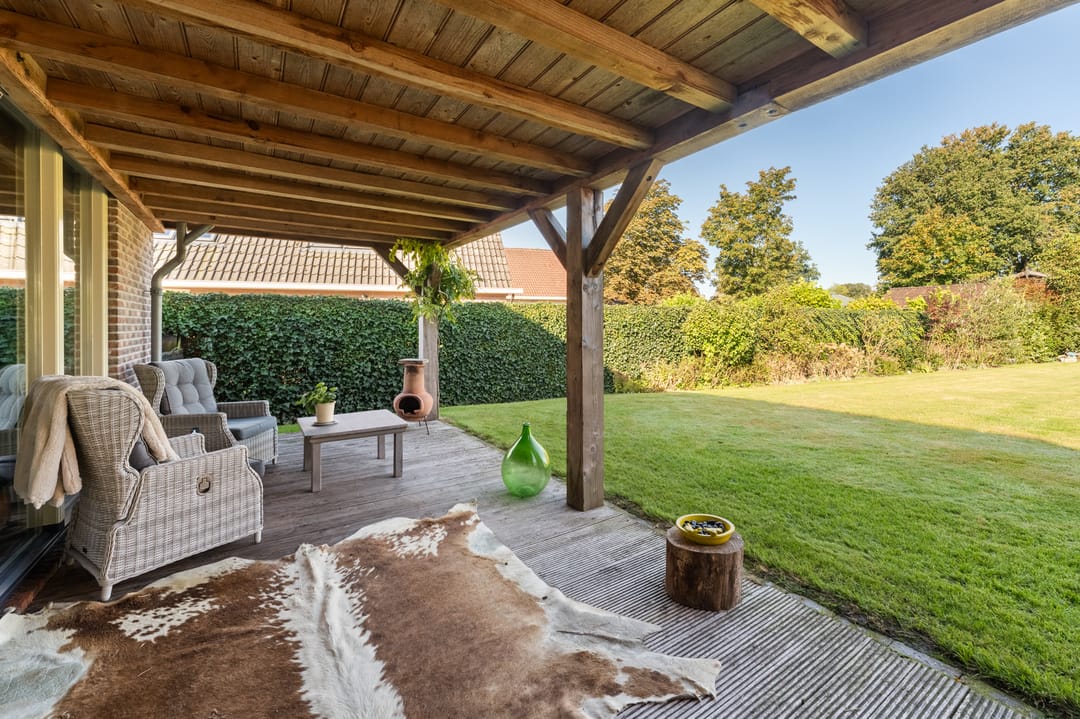 De ruime bijgebouwen, waaronder een kapschuur en carport, bieden meer dan voldoende parkeerruimte, ook voor campers, caravans of boten. De tuin is met zorg aangelegd en vormt een rustige plek om te genieten van deze bijzondere locatie.