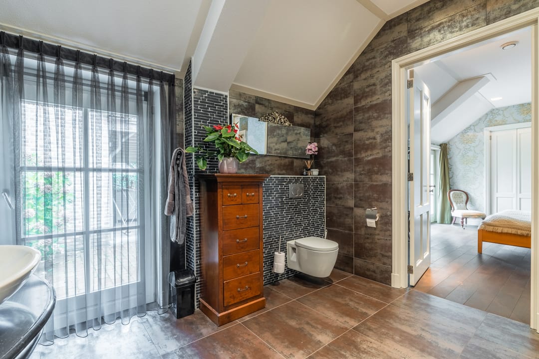 • Het aparte toilet beschikt over een wandcloset en een fontein.