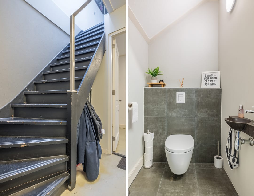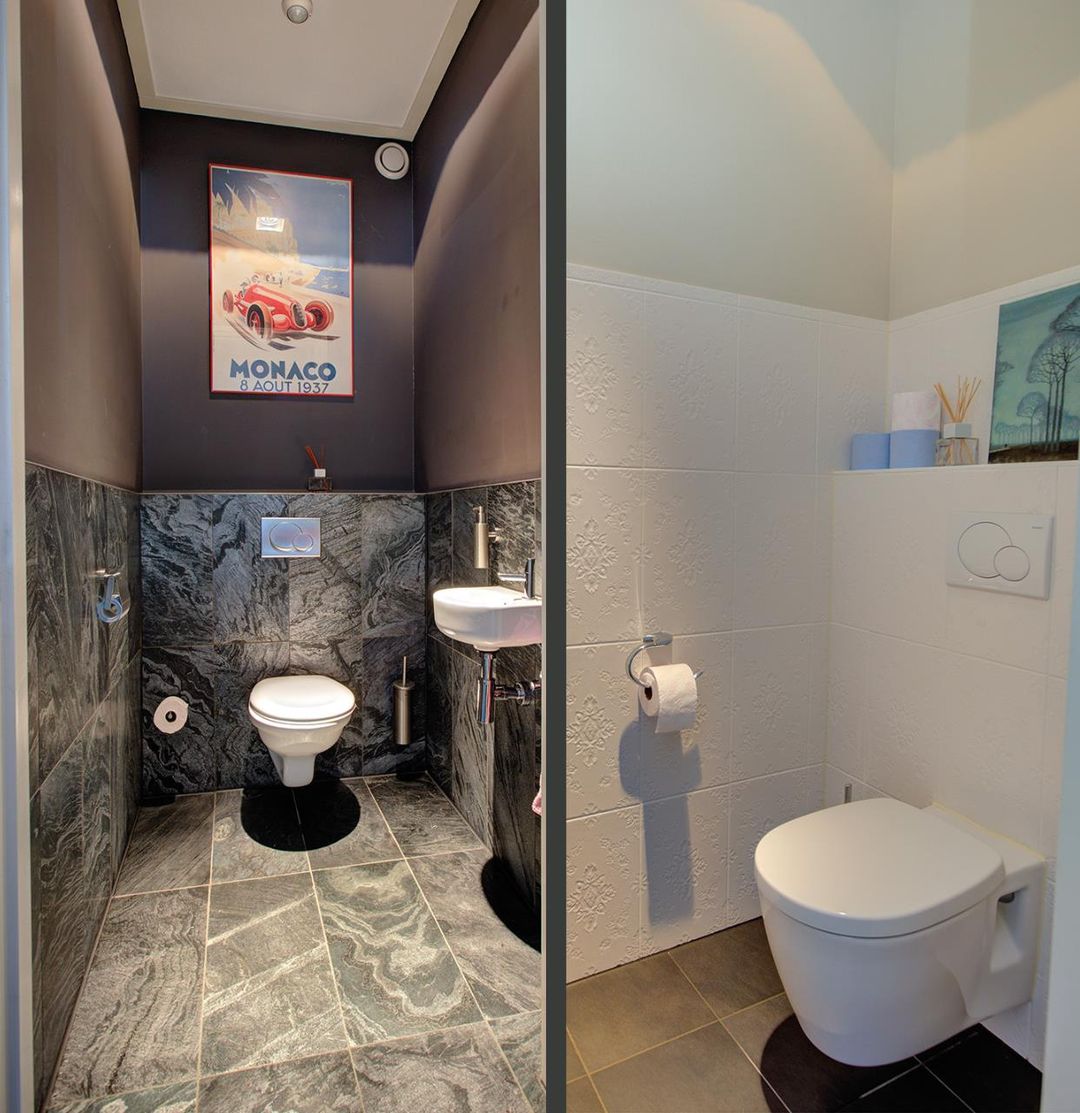 • Het toilet in de entree is ingericht met een wandcloset en fontein.