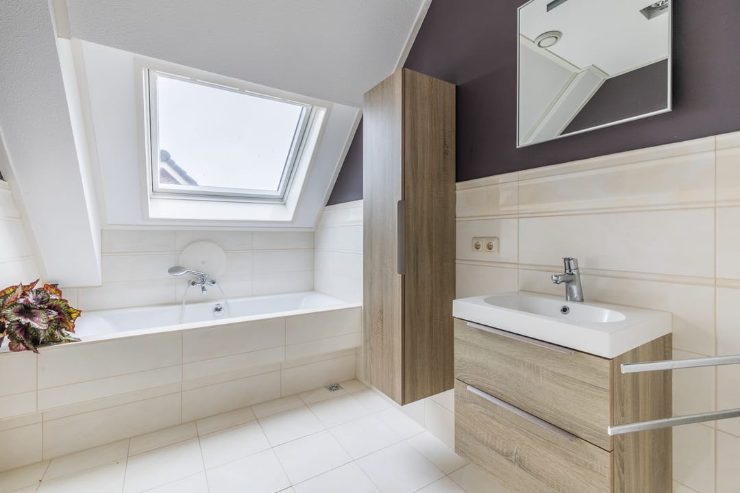• De badkamer is voorzien van wastafelmeubel en inloopdouche.