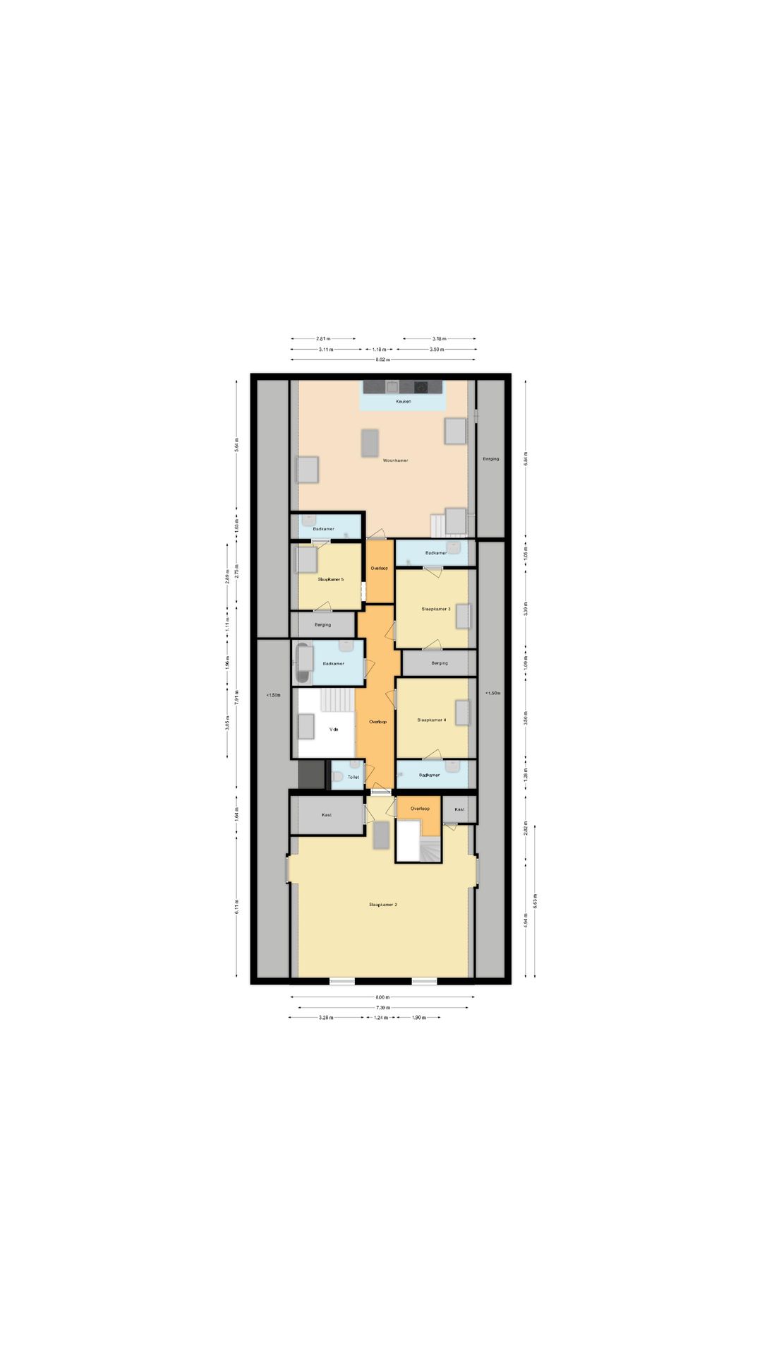 • De woning is volledig voorzien van vloerverwarming, verdeeld in zes groepen, met zoneregeling.