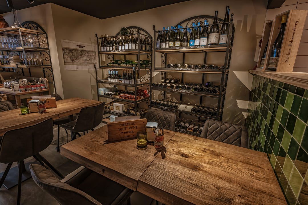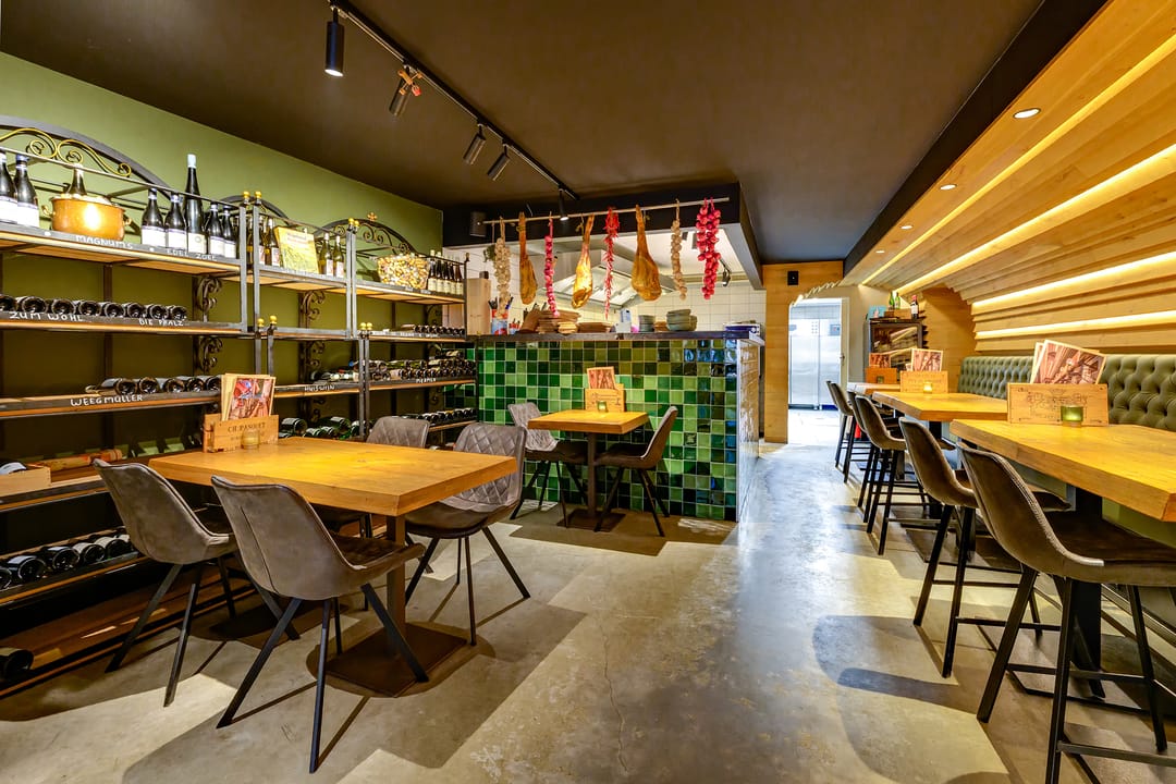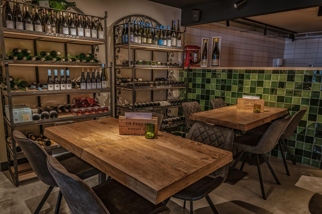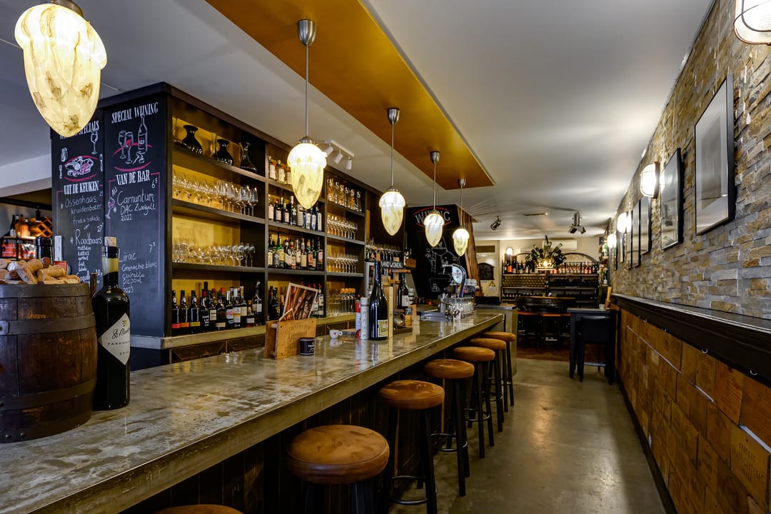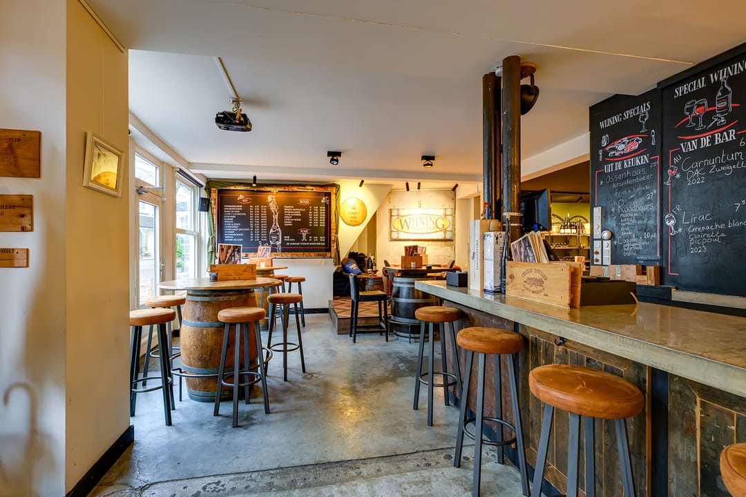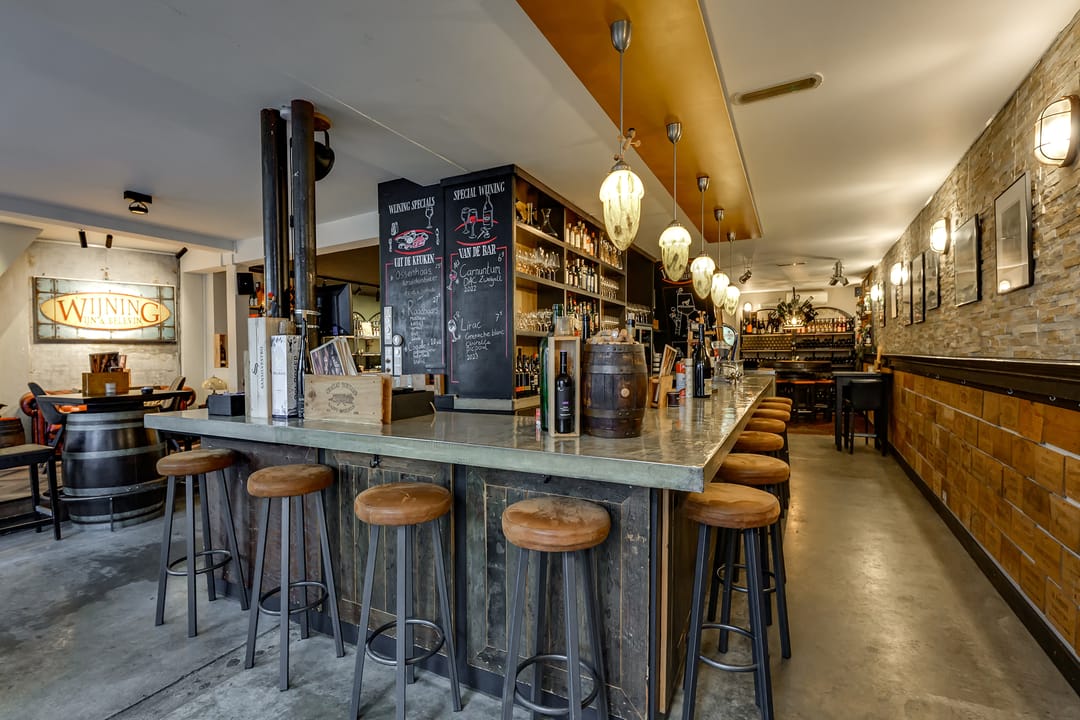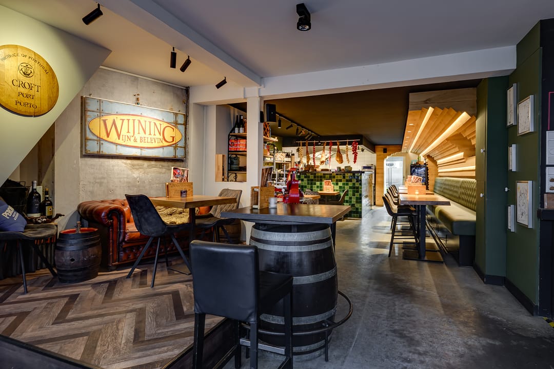 Het pand zelf heeft al karakteristieke elementen van de oude binnenstad van Schiedam, zoals stenen muren en hoge ramen, wat een authentiek gevoel geeft. Als u het bedrijf binnenkomt valt direct het warme en sfeervolle interieur op. Een combinatie van hout, warme tinten en sfeerverlichting waardoor het voelt als een knusse en stijlvolle plek om te genieten van heerlijke wijnen en shared food.