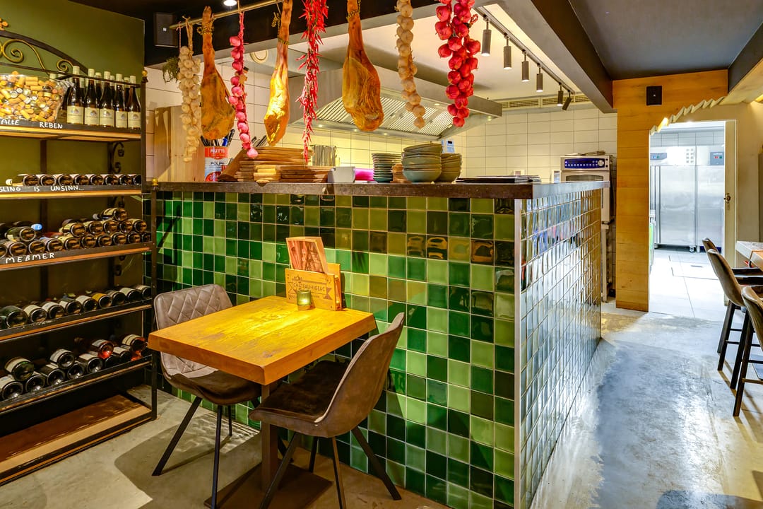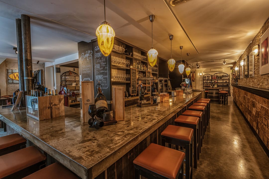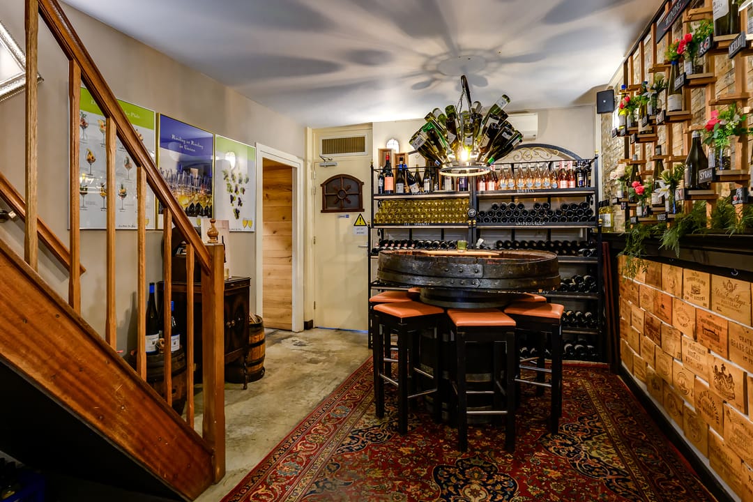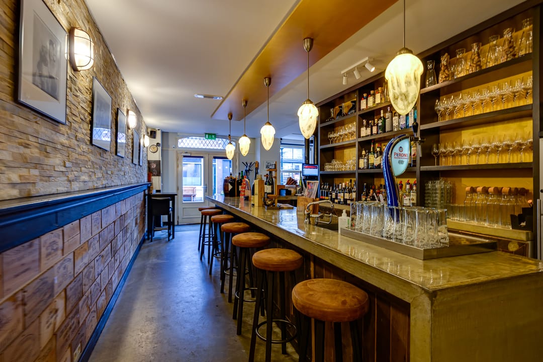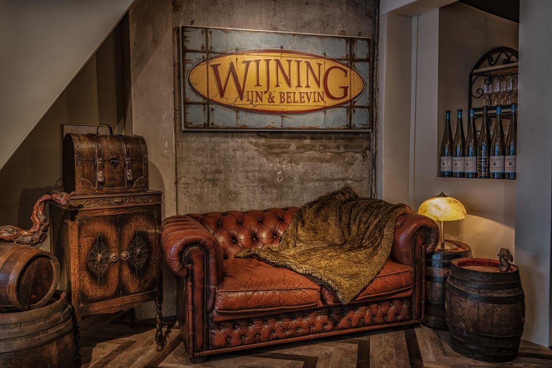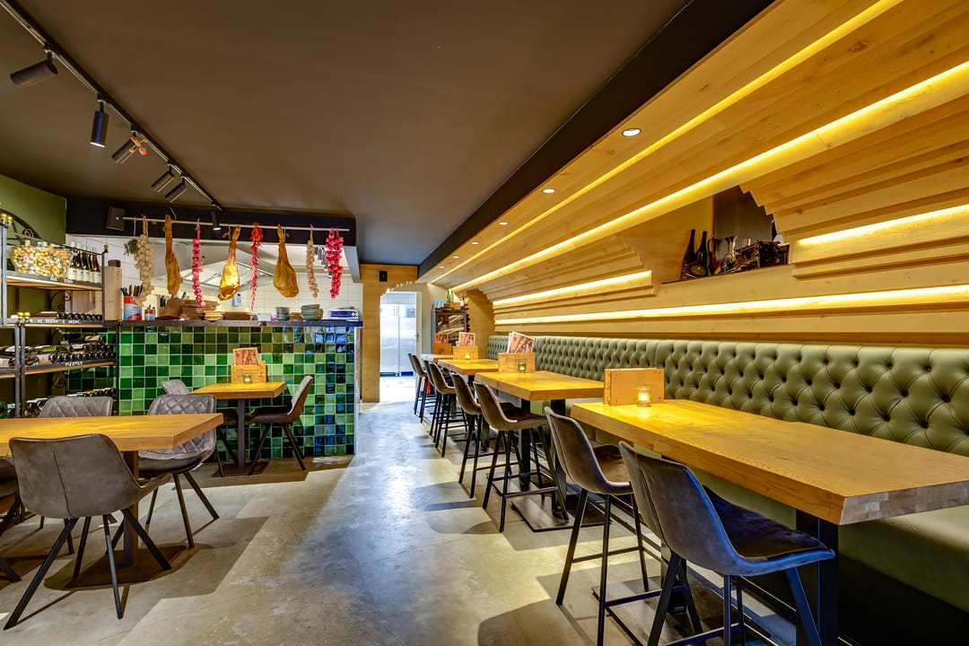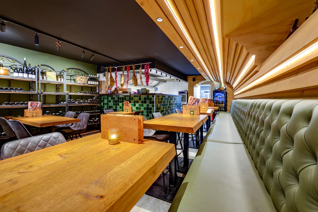 Het pand zelf heeft al karakteristieke elementen van de oude binnenstad van Schiedam, zoals stenen muren en hoge ramen, wat een authentiek gevoel geeft. Als u het bedrijf binnenkomt valt direct het warme en sfeervolle interieur op. Een combinatie van hout, warme tinten en sfeerverlichting waardoor het voelt als een knusse en stijlvolle plek om te genieten van heerlijke wijnen en shared food.