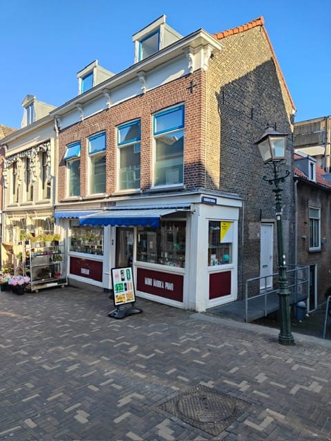 Het pand ligt in een drukke winkelstraat met passage en diverse winkels nabij het oude centrum