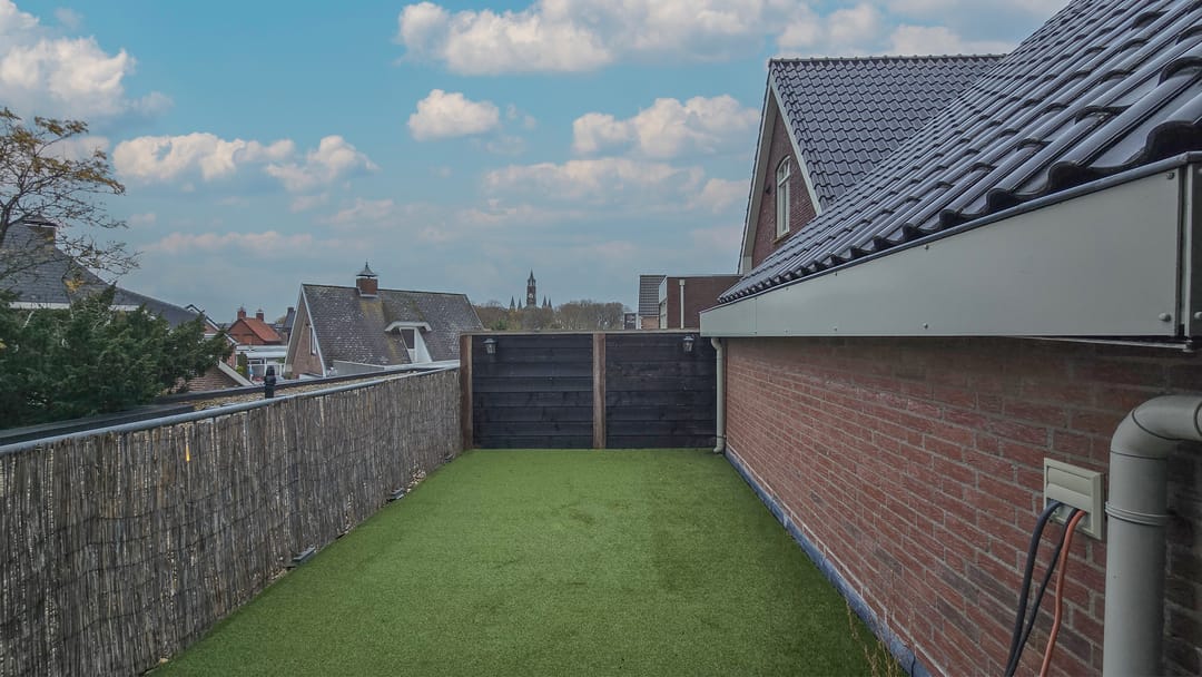 Het betreft hier een zeer ruime 4-kamer maisonnette met dakterras, die op het westen ligt, en een parkeerplaats op de begane grond. De gevels, het dak en deels de kozijnen zijn vernieuwd. Het appartement is volledig afgewerkt met tegelvloeren, stucwerkwanden en afgewerkte plafonds. Tevens beschikt het over een keuken en een badkamer.