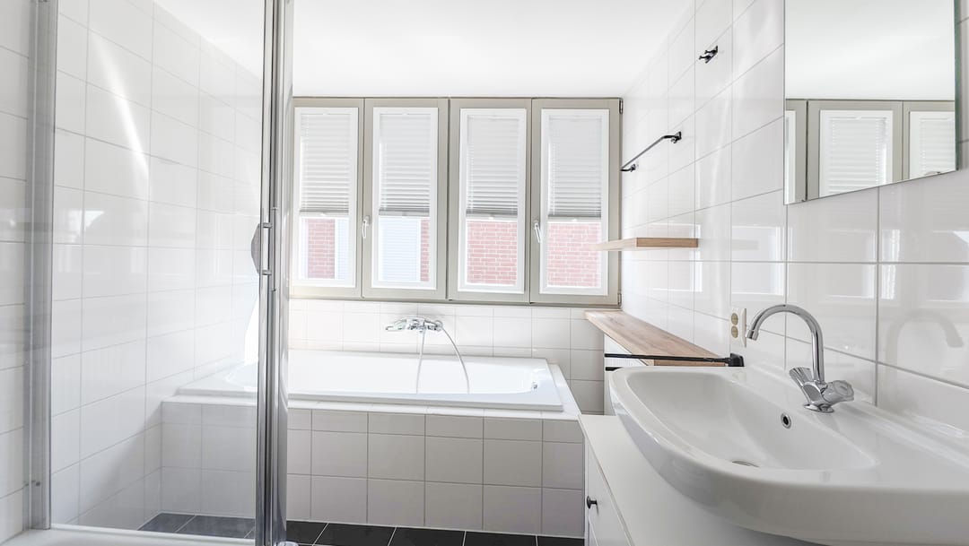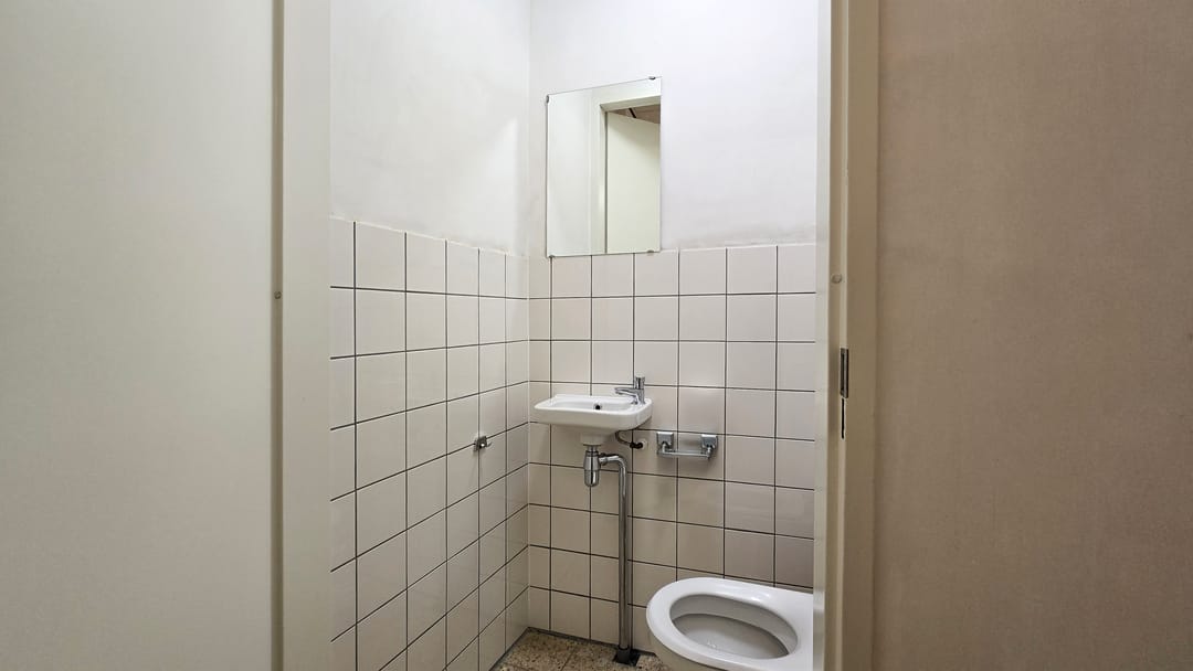- Toilet voorzien van wanden, kozijnen en deuren, wandtegels (tot 1,50 m), vloertegels en sanitair;