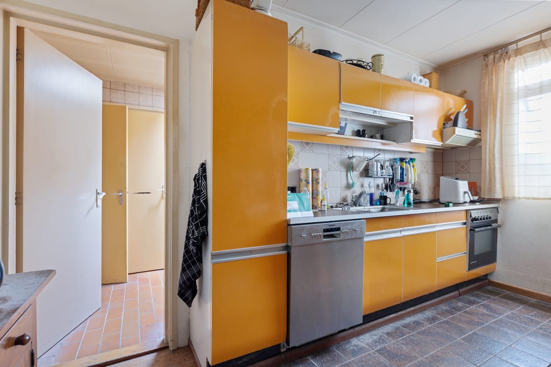 Aan de voorkant van het huis, ligt de royale woonkamer met doorloop naar de keuken. Aan de achterzijde bevindt zich de praktische bijkeuken, die tevens toegang biedt tot de keuken, met toilet. Vanuit de bijkeuken loop je via de achterdeur de achtertuin in, die ook bereikbaar is via een achterom. De trap in de hal leidt naar de eerste verdieping. Op de overloop bevinden zich vier (slaap)kamers, een berging en de badkamer.