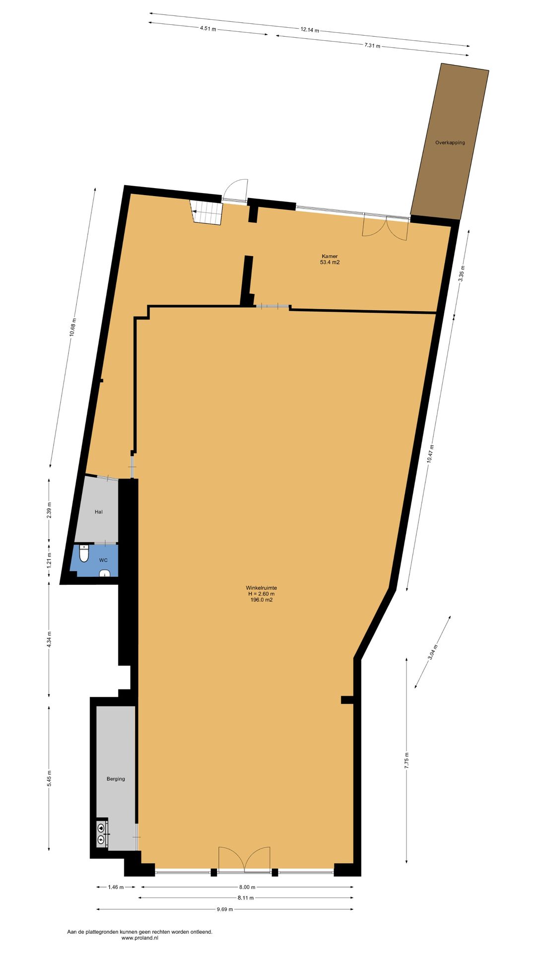 Winkelruimte ca. 169 m² (excl. berging, magazijn, toilet en zolderkamer).