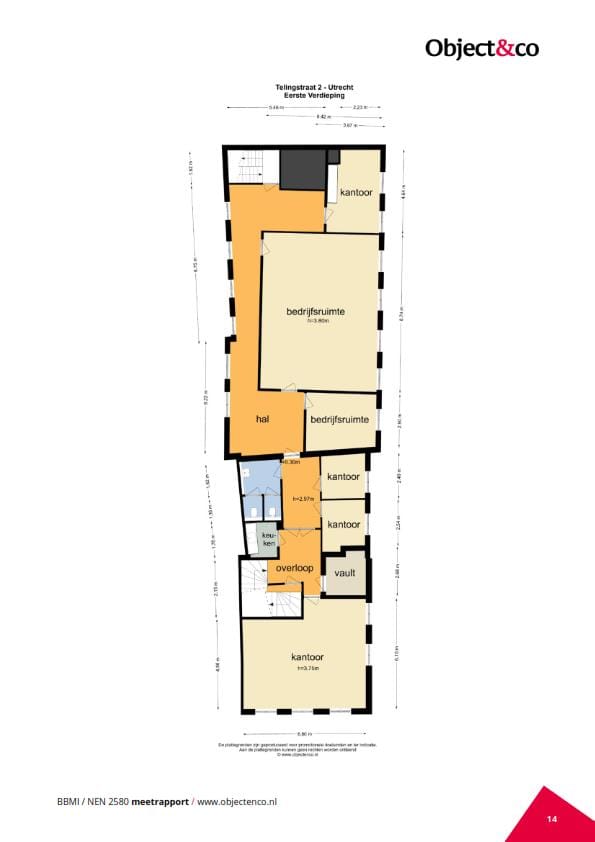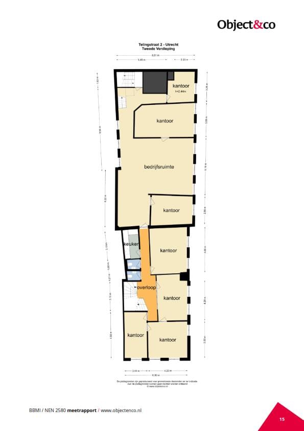 Het voor verkoop beschikbare vloeroppervlak bedraagt in totaal 1.228,20 m² BVO, verdeeld over 203,70 m² kelder, 248,10 m² begane grond, 257,20 m² eerste etage, 257,20 m² tweede etage en 262,00 m² derde etage. Een specificatie van het NEN 2580-meetcertificaat is bij ons kantoor op te vragen. Eventuele onder- of overmaat geeft geen van partijen rechten.