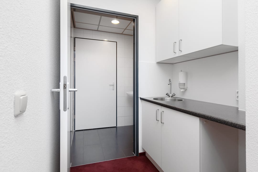 - Enkele toiletunit met mechanische afzuiging en wastafel