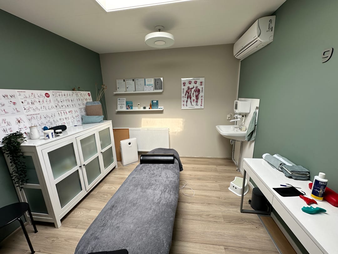 De eerste verdieping is bereikbaar door middel van een houten trap en beschikt over twee sportzalen, sportruimte en kantoor met behandelruimte.